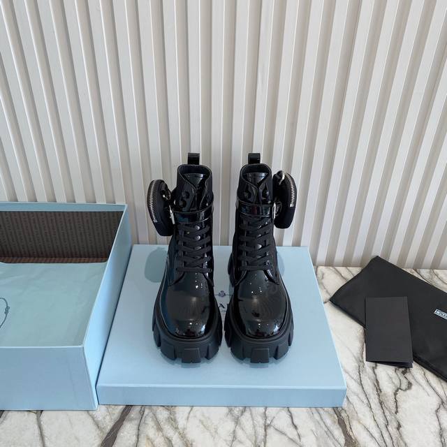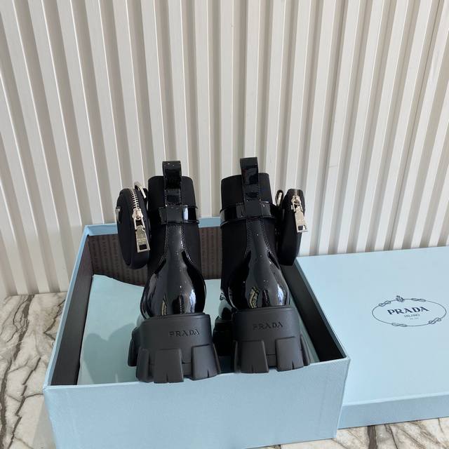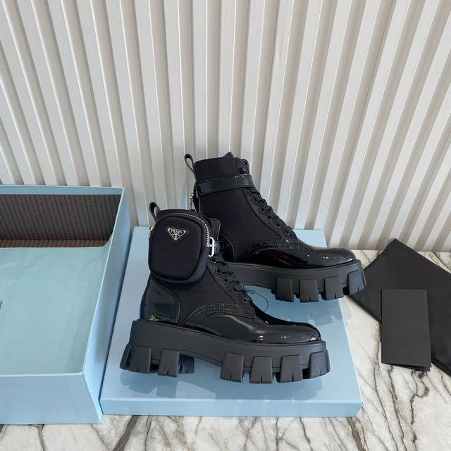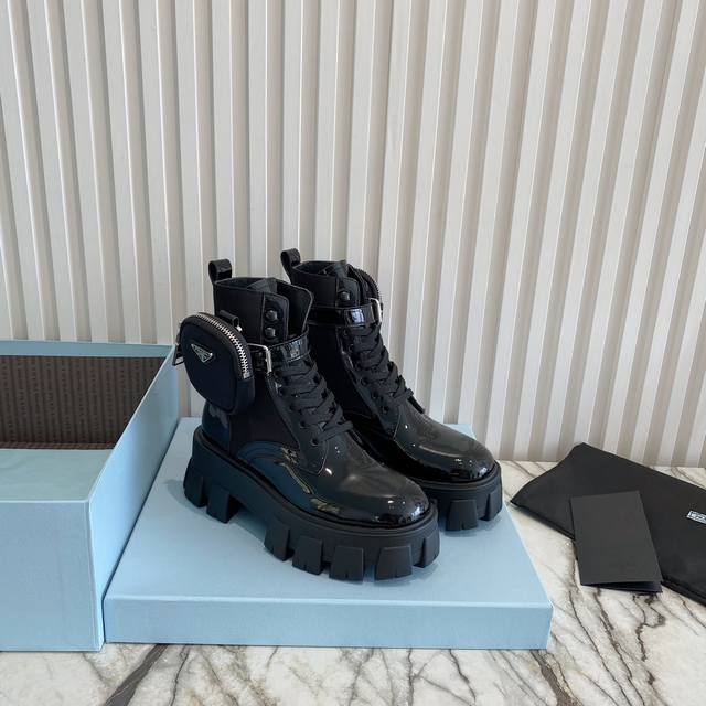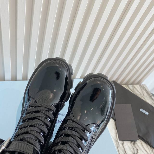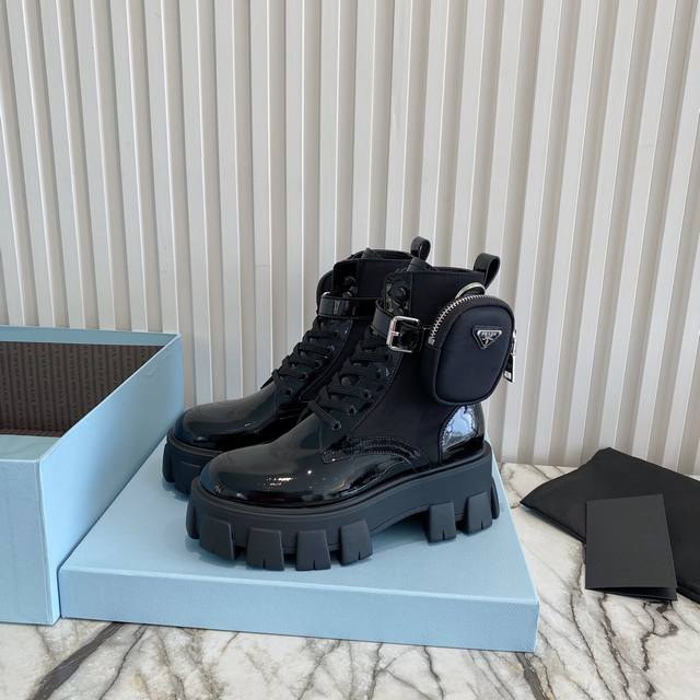 顶级出厂 Sss重磅推出普拉达最新包包短靴厚底系列 Prada早春T台走秀网红同款"造梦不夜城",Prada能在重要场合上用得上了,小清新风带点贵气的感觉,上脚非常完美穿搭配上此鞋,优雅大方,晶莹剔透,无论各种配件材质,都是独家一比一定制,必做到原版零距离,整个系列都充满了令人兴奋和意外的元素结合,不同的材质,肌理的面料的表现,具有极浓的艺术气息,让你领略Prada女孩的百变风格。 1鞋面:哑光进口开边朱,亮光软漆皮 2内里:进口羊皮内里 3大底:意大利原版原色Tpu 4原垫脚,码数35M-40M