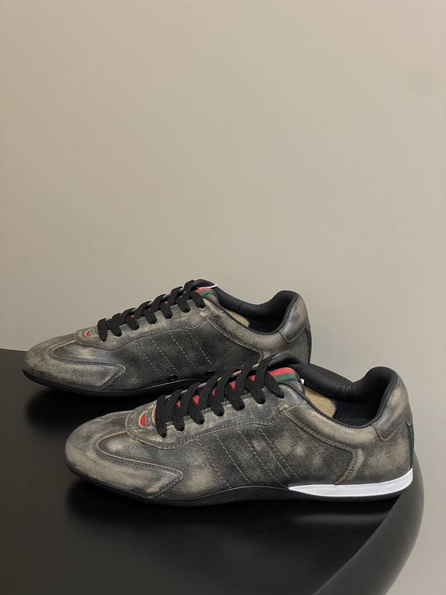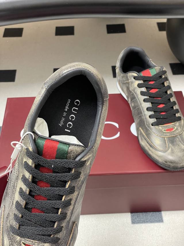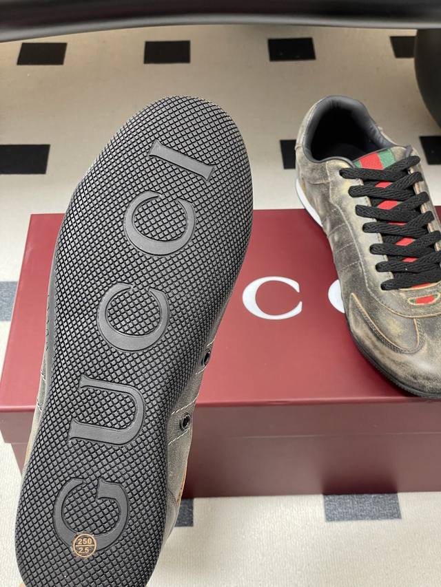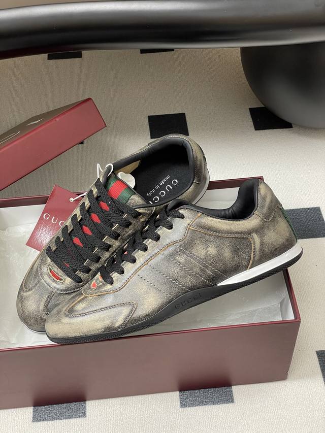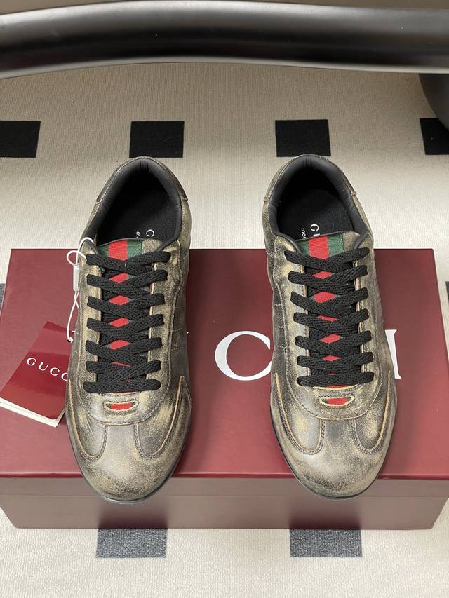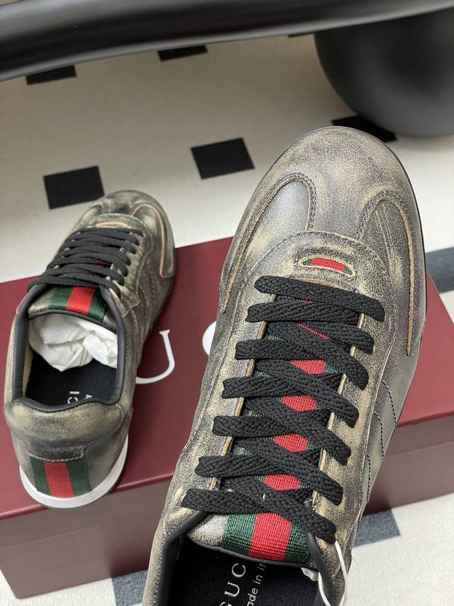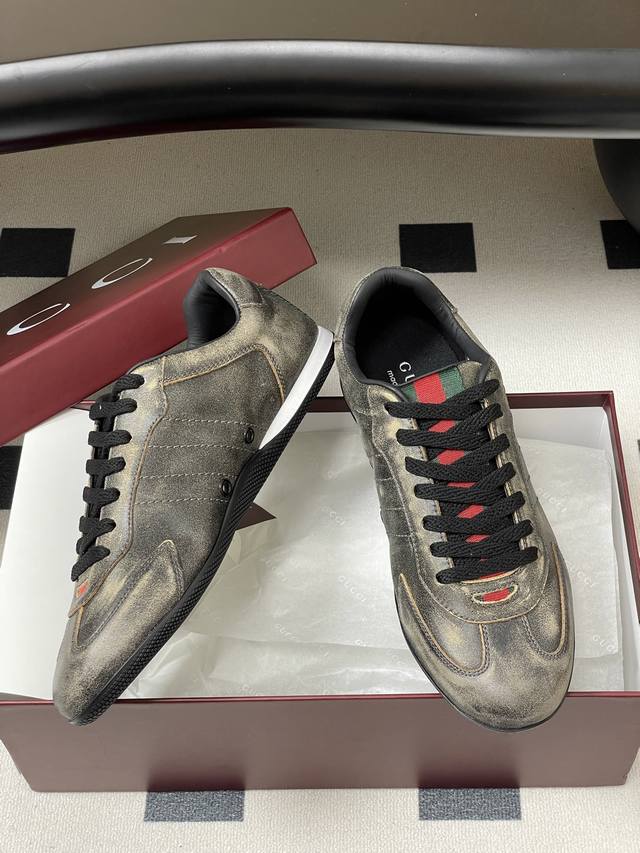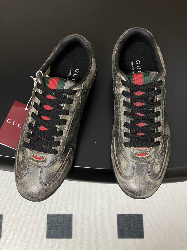 顶级品质 配高档飞机盒 2025早秋新款Gucci 古驰Shift系列情侣款运动鞋系带休闲德训鞋 Gucci Shift系列全新上市,轻盈设计焕新诠释运动风尚。利落廓形更添自在本色,行动间彰显精致质感。织带细节宛如一道延绵不绝的饰带贯穿于整个设计,侧边缝线细节增添点睛之笔。 鞋面:水洗效果牛皮 定制麂皮 内里垫脚:羊皮 鞋底:开模双色Tpu大底 码数:女35-39 40.41定做不退换 男39-44 38.45定做不退换