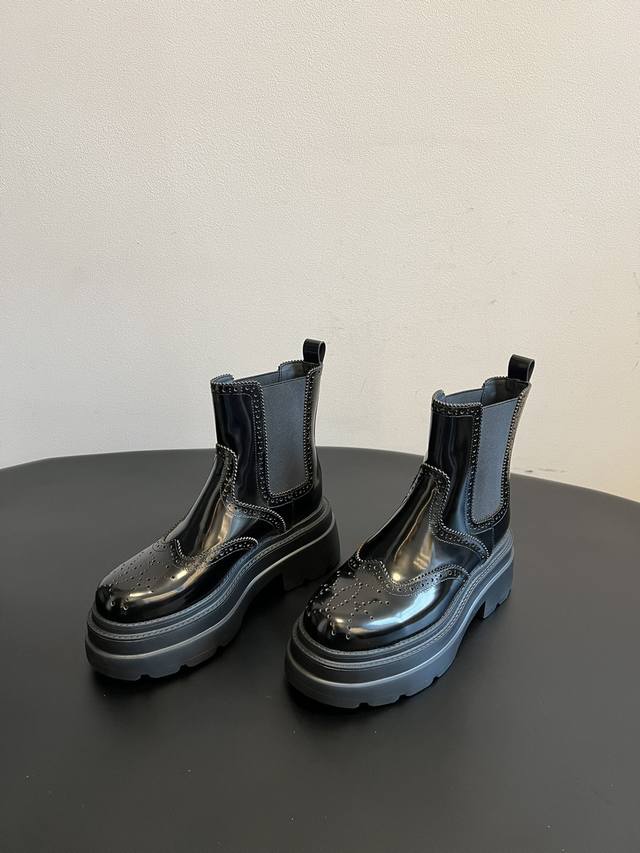 顶级品质 Alexander Wan* 25Ss 布洛克雕花切尔西靴 将传统布洛克雕花与切尔西靴的松紧带靴筒结合,同时加入厚底工装风元素,既保留复古优雅感,又注