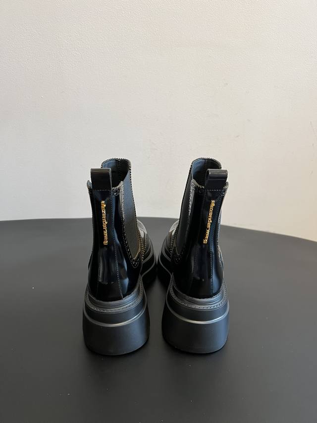 顶级品质 Alexander Wan* 25Ss 布洛克雕花切尔西靴 将传统布洛克雕花与切尔西靴的松紧带靴筒结合,同时加入厚底工装风元素,既保留复古优雅感,又注入街头酷感。延续Alexander Wang一贯的“酷飒极简”风格,在经典靴型基础上加入个性细节,彰显品牌独特的潮流态度。 鞋面采用亮面皮革,光泽度高,提升视觉高级感,同时易于清洁打理。厚实的橡胶大底不仅增强防滑性,还能有效增高,拉长腿部线条,优化身材比例。 材质:开标珠牛皮 内里:羊皮 大底:原版开模大底 增高:5.5Cm Size:35-40码