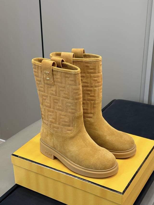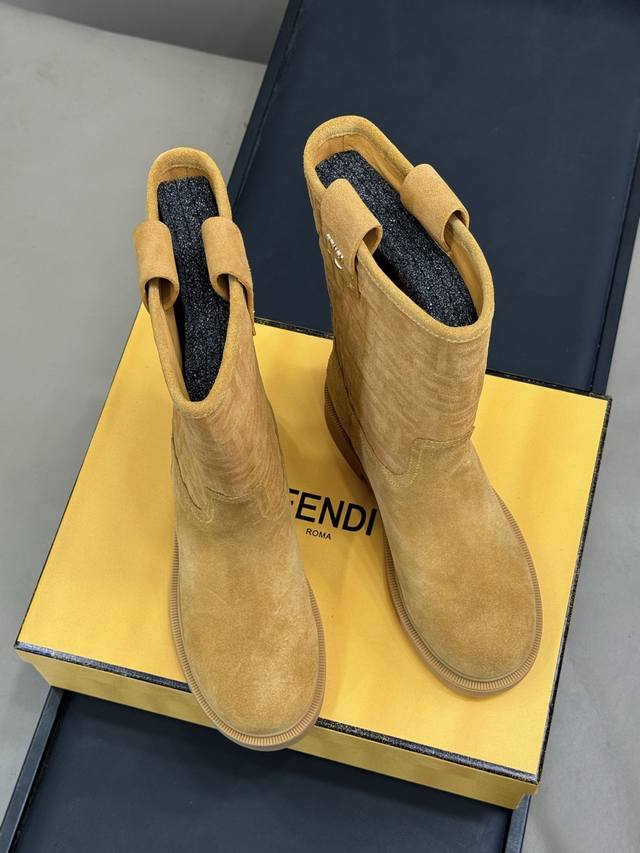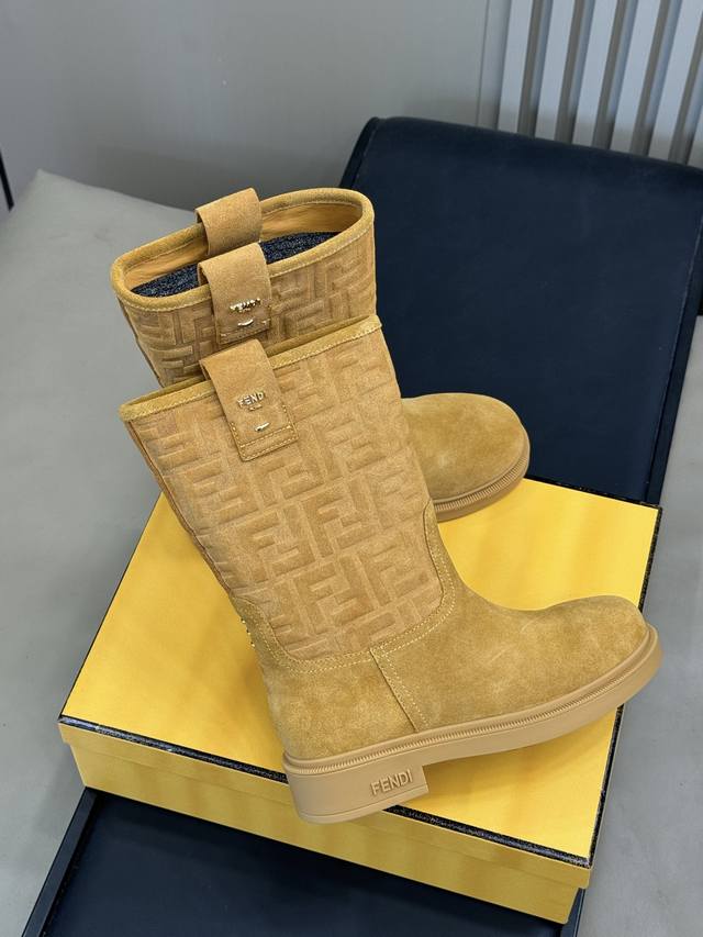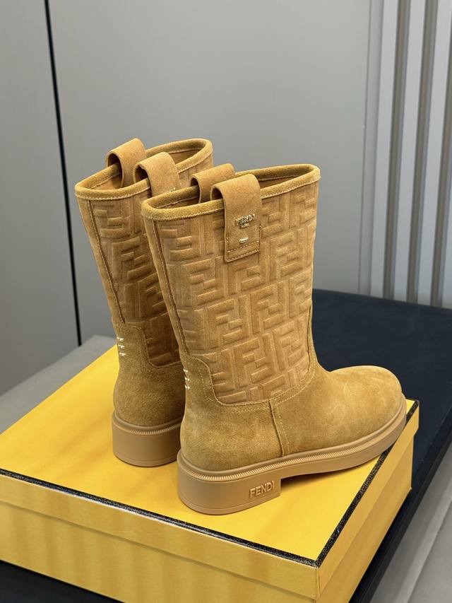 顶级品质 Fendi 芬迪Ss25秋冬新款膝下短靴 温柔到骨子里的奶茶浅棕调,上脚自带复古滤镜,优雅得恰到好处。说它是“时髦战靴”一点不夸张 配大衣显气场,搭裙子添温柔,秋冬衣柜有它在,穿搭焦虑直接退散 夸夸麂皮质感!是那种细腻的牛皮材质,摸起来软乎乎的,上脚也舒服不磨脚。这波安利我先吃为敬,预感会成为秋冬断货王! Size 35-41