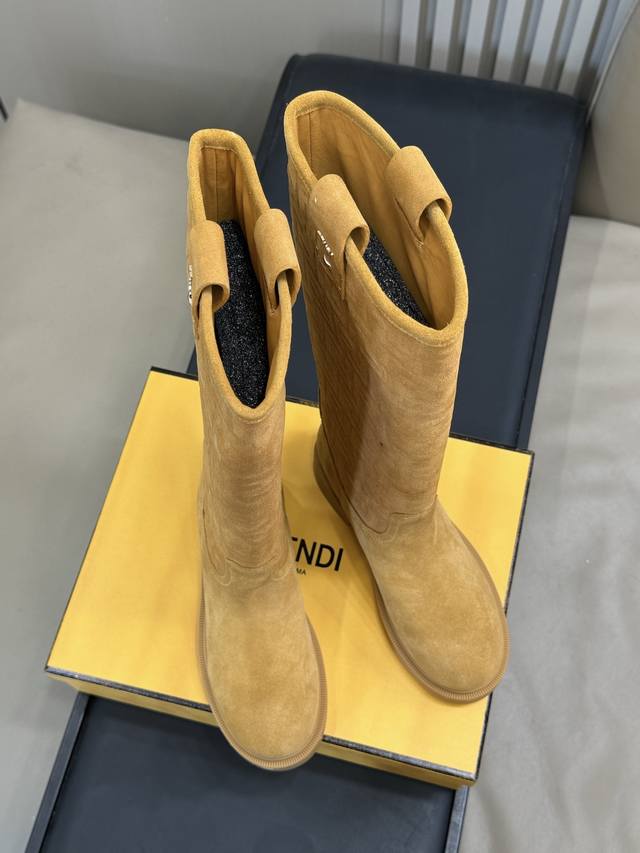 顶级品质 Fendi 芬迪Ss25秋冬新款膝下长靴 温柔到骨子里的奶茶浅棕调,上脚自带复古滤镜,优雅得恰到好处。说它是“时髦战靴”一点不夸张 配大衣显气场,搭裙子添温柔,秋冬衣柜有它在,穿搭焦虑直接退散 夸夸麂皮质感!是那种细腻的牛皮材质,摸起来软乎乎的,上脚也舒服不磨脚。这波安利我先吃为敬,预感会成为秋冬断货王! Size 35-41
