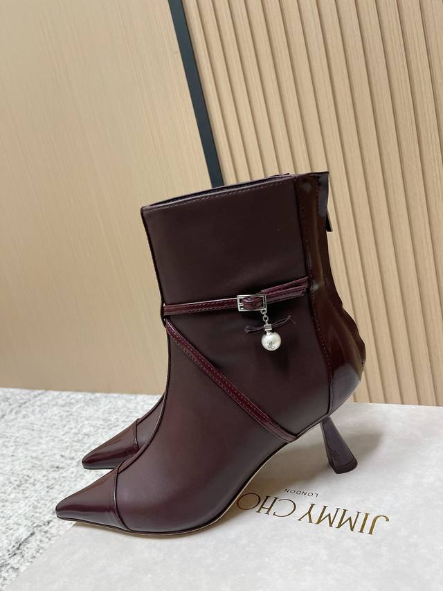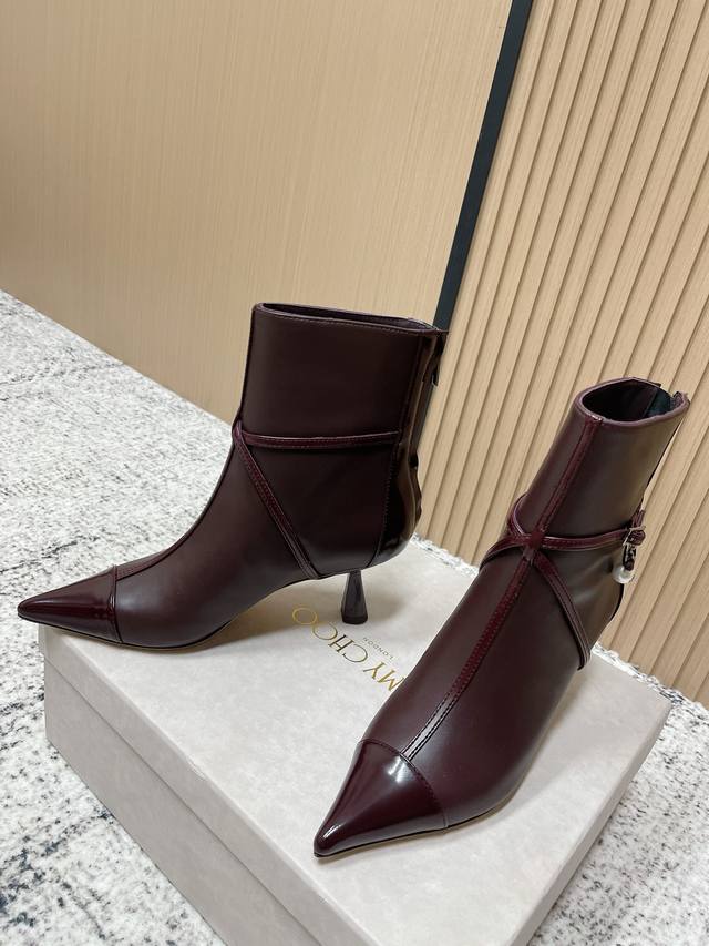 顶级品质: Jimmy Choo Fw25 New Arrival~ Jc吉米周2025秋冬新款尖头后拉短靴 鞋面:A级牛皮 内里垫脚:羊皮 鞋底:意大利真皮大底 跟高:6.5Cm Size: 35-39 40 41 42订做不退换