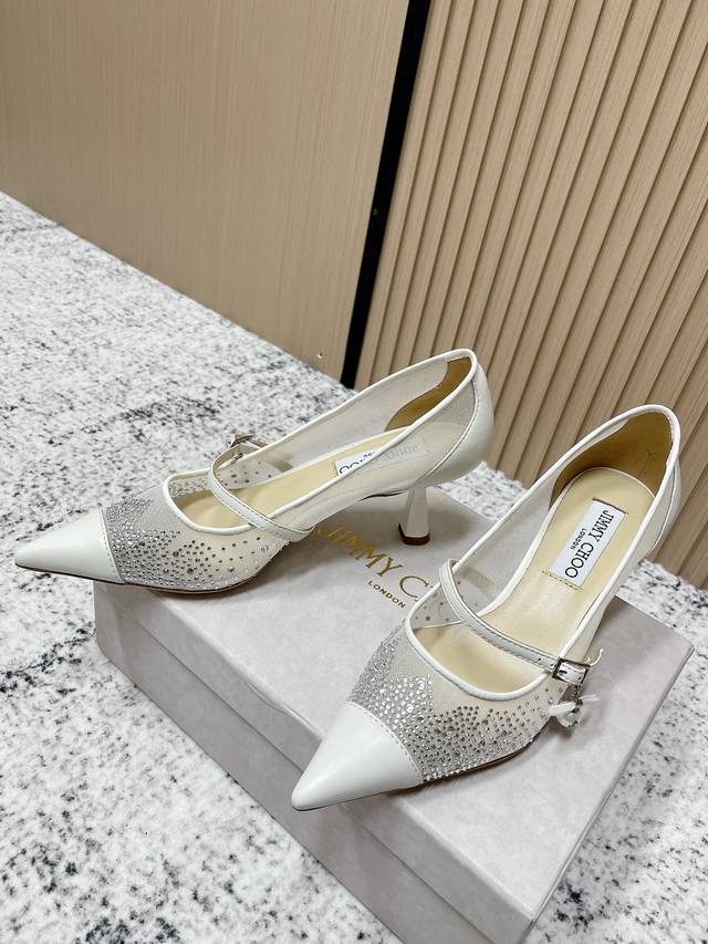 顶级品质: Jimmychoo Ss25 New Arrival~ 吉米周|早秋新款高跟鞋 Jc这款尖头高跟鞋真的太美了~ 兼具性感与脚翘~尽显高级优雅气质 网纱烫钻鞋面 内里 意大利进口真皮大底 跟高:6.5Cm Size:35-39 40 41 42定制不退换