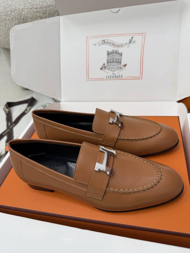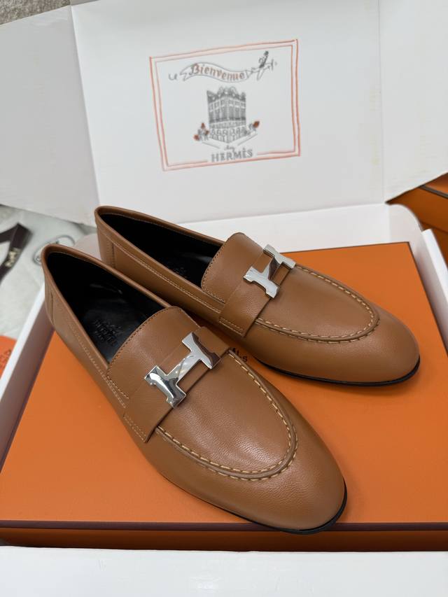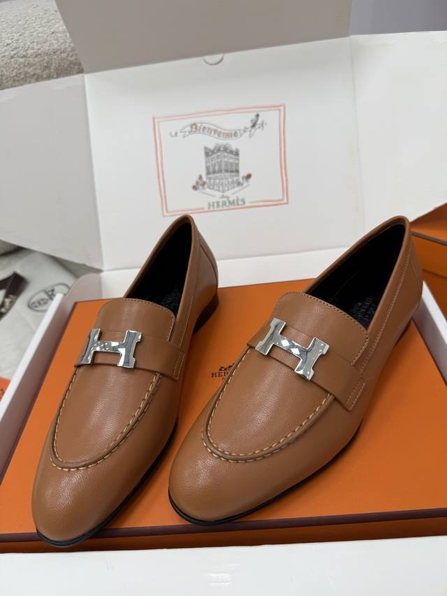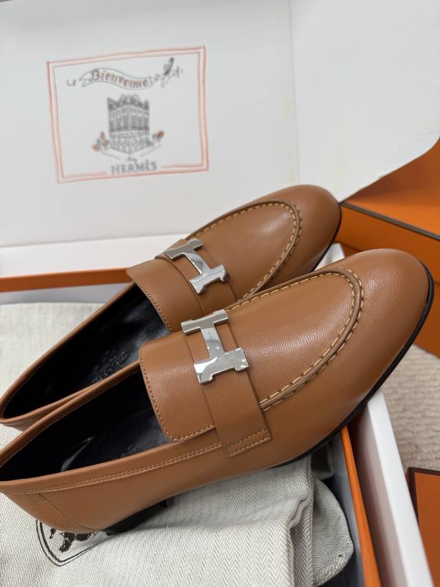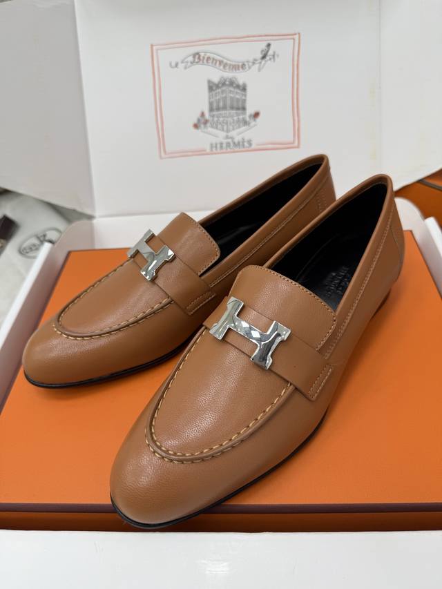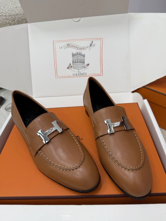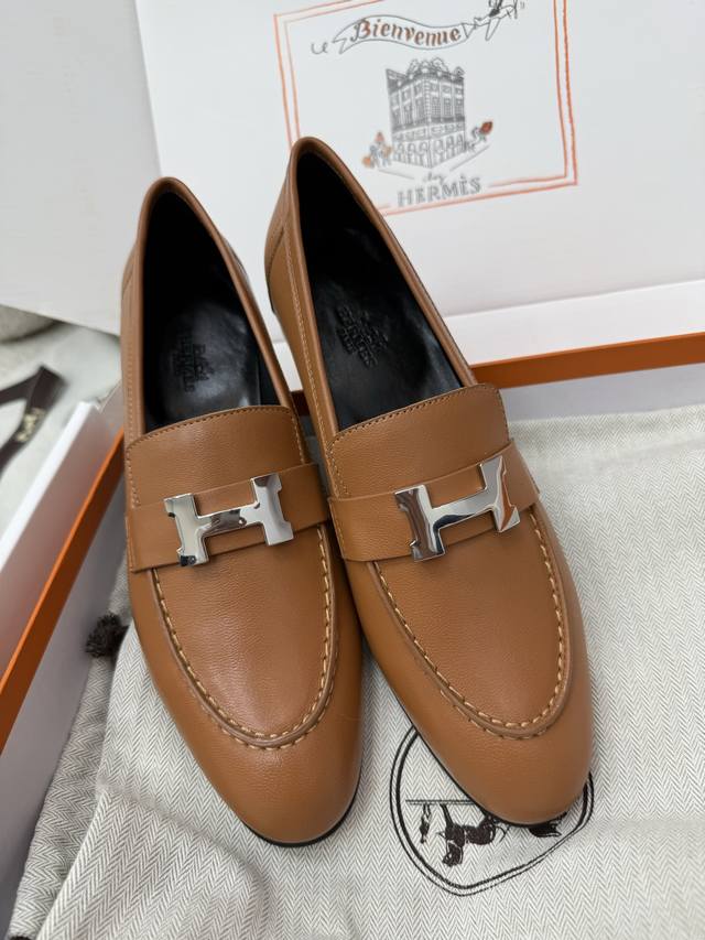 / 顶级品质 * Paris复古H扣乐福鞋|原版购入代购级别 -棕色 材质与工艺: 原版进口羊皮 羊皮内衬 鞋面饰有 银色H扣 意大利真皮大底 2.5Cm鞋跟 Si