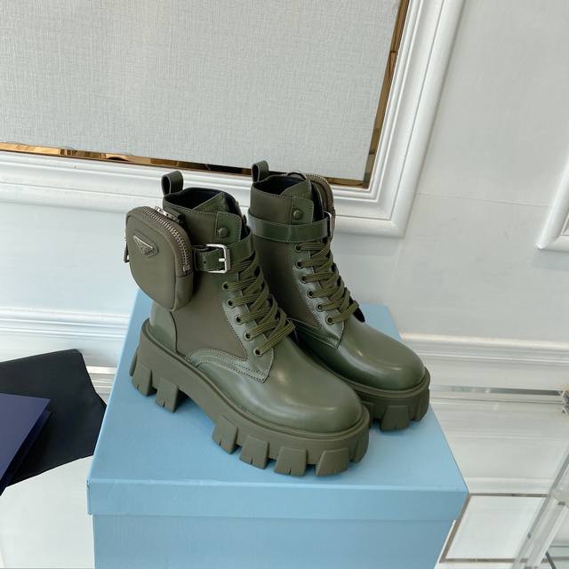 顶级女款 Sss重磅推出普拉达最新包包短靴厚底系列 Prada早春T台走秀网红同款"造梦不夜城",Prada能在重要场合上用得上了,小清新风带点贵气的感觉,上脚非常完美穿搭配上此鞋,优雅大方,晶莹剔透,无论各种配件材质,都是独家一比一定制,必做到原版零距离,整个系列都充满了令人兴奋和意外的元素结合,不同的材质,肌理的面料的表现,具有极浓的艺术气息,让你领略Prada女孩的百变风格。 1鞋面:哑光进口开边朱,亮光软漆皮 2内里:进口羊皮内里 3大底:意大利原版原色Tpu 4原垫脚,码数女35M-40M