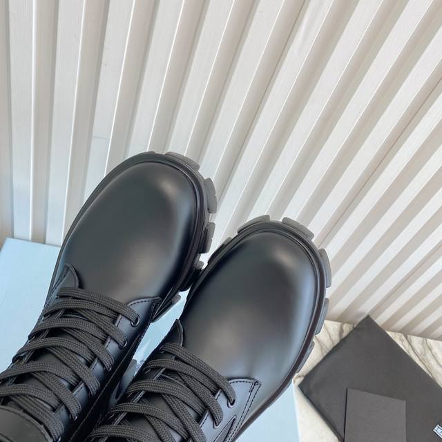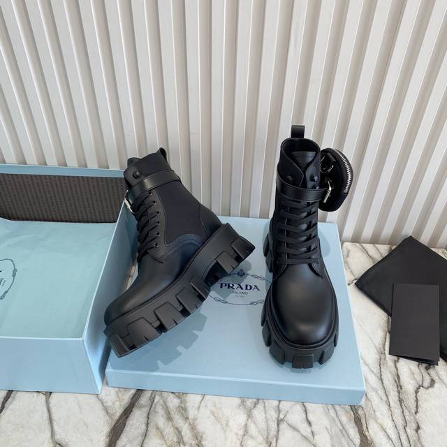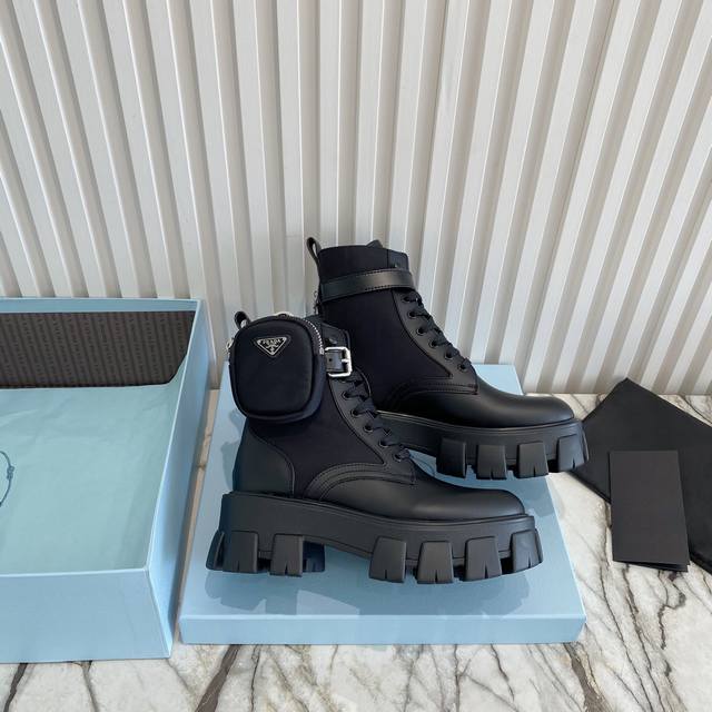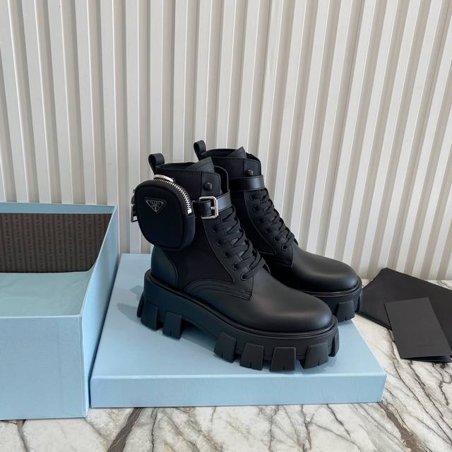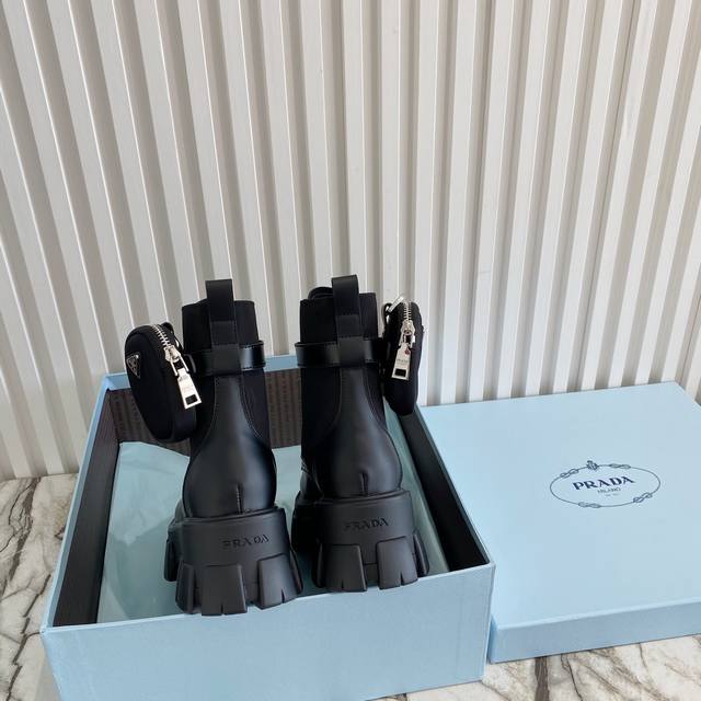 顶级情侣款款出 Sss重磅推出普拉达最新包包短靴厚底系列 Prada早春T台走秀网红同款"造梦不夜城",Prada能在重要场合上用得上了,小清新风带点贵气的感觉,上脚非常完美穿搭配上此鞋,优雅大方,晶莹剔透,无论各种配件材质,都是独家一比一定制,必做到原版零距离,整个系列都充满了令人兴奋和意外的元素结合,不同的材质,肌理的面料的表现,具有极浓的艺术气息,让你领略Prada女孩的百变风格。 1鞋面:哑光进口开边朱,亮光软漆皮 2内里:进口羊皮内里 3大底:意大利原版原色Tpu 4原垫脚,码数35M-41M