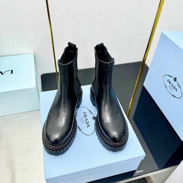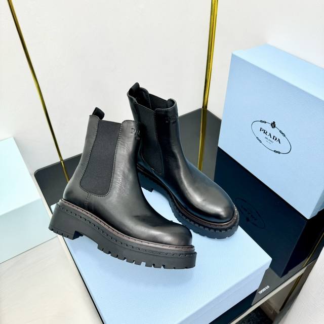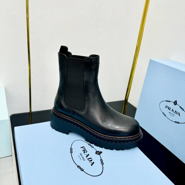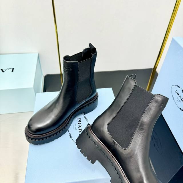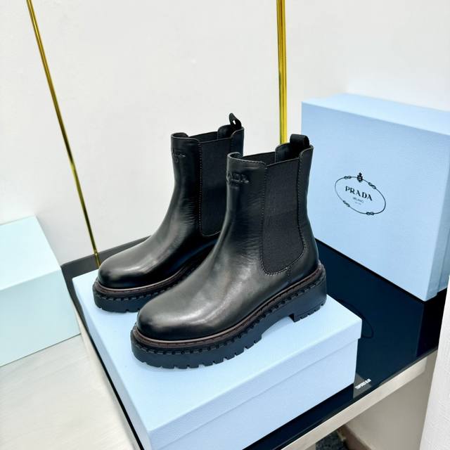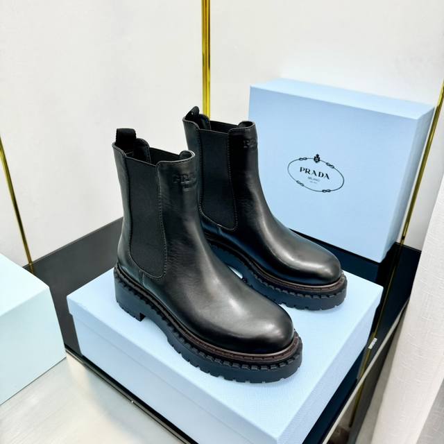 / 顶级版刘雯杨幂同款增高鞋切尔西短靴 Prad*普拉达 秋冬新款走秀款布洛克厚底踝靴系列 这款上脚超好看.而且可以拉长腿型. 复古手工擦色,高级气质拉满 面料:原