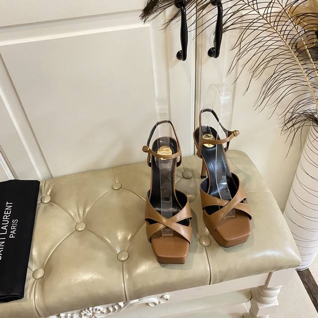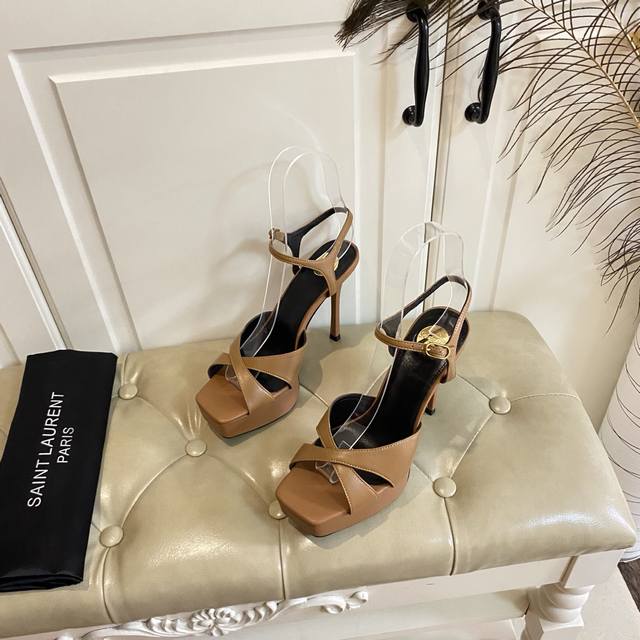 / 顶级版本,圣罗兰Ysl Saint Laurent新款高跟凉鞋,羊皮 漆皮 真丝面,羊皮里,真皮大底,跟高8.5Cm,前水台高约2.5Cm,35-40码 41,