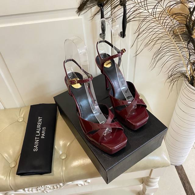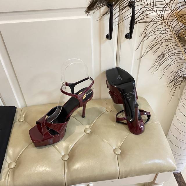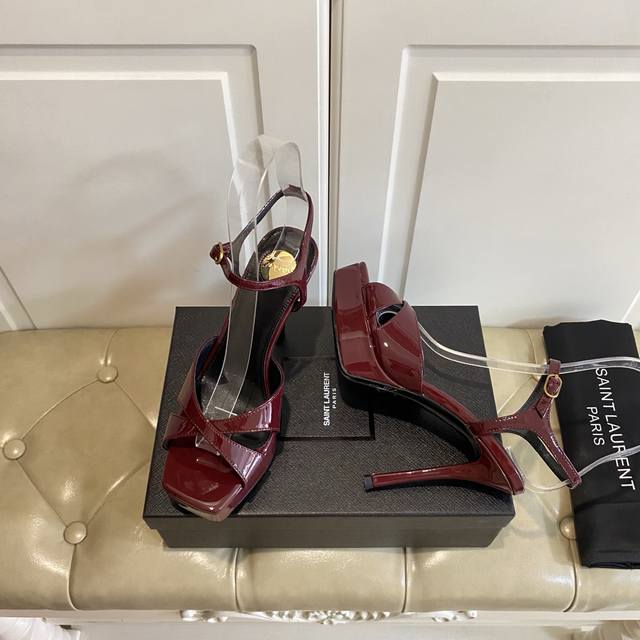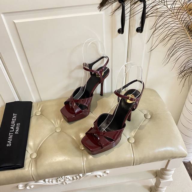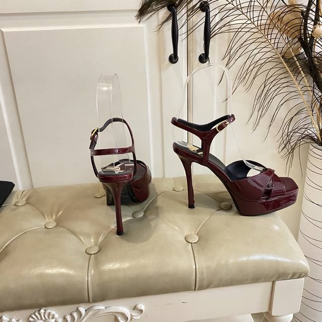 / 顶级版本,圣罗兰Ysl Saint Laurent新款高跟凉鞋,羊皮 真丝面,羊皮里,真皮大底,跟高8.5Cm,前水台高约2.5Cm,35-40码 41,42码