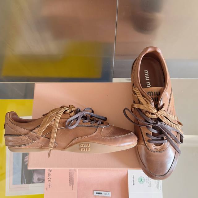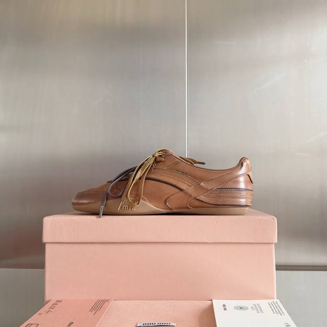 / 顶级版本:女款 Miumiu缪缪 最新走秀款Gymnasium系列 拼色 休闲 运动鞋 德训鞋 阿甘鞋 原版购入开发 做货 时装秀中的标志性搭扣与运动鞋的运动风