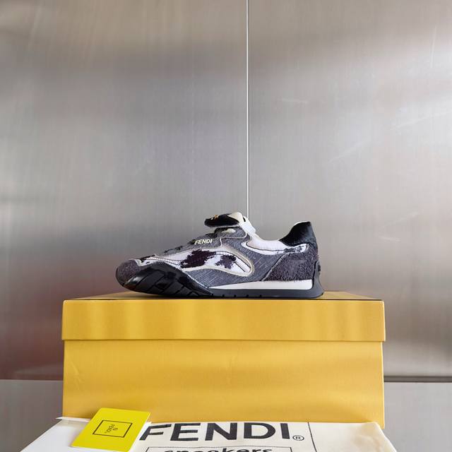 顶级版本:女款440男款 Fendi芬迪 Wave Pulse系列 喷墨 翻盖 马毛 情侣款 休闲 运动鞋 阿甘鞋 Fendi Wave Pulse系带低帮运动