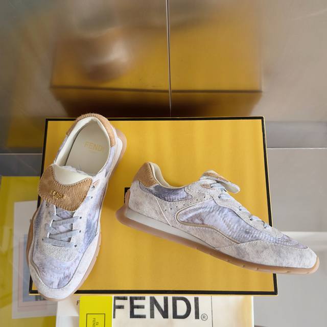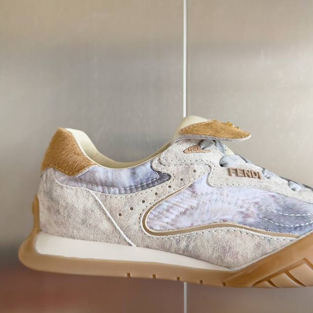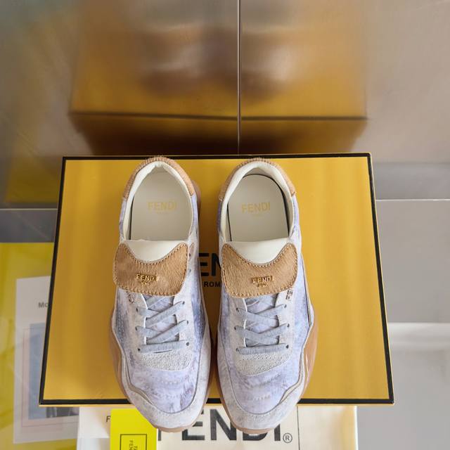 顶级版本:女款440男款 Fendi芬迪 Wave Pulse系列 喷墨 翻盖 马毛 情侣款 休闲 运动鞋 阿甘鞋 Fendi Wave Pulse系带低帮运动鞋。高科技布料,饰灰色图形印花和同色系绒面材质嵌饰。撞色黑色卡瓦利诺小牛皮细节,翻折鞋舌。灰色混色管状系带。侧面饰有三维橡胶标志,鞋舌饰有金色金属Fendi标志。黑色橡胶跑鞋鞋底,侧面采用环绕式边缘设计,饰有对角F图案 配送专柜精美包装 面料: 原版定制进口头层牛皮 内里: 原版定制柔软羊皮里 大底: 原版开模防滑Tpu材质 底厚: 2Cm Siz
