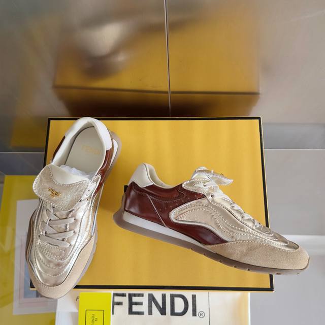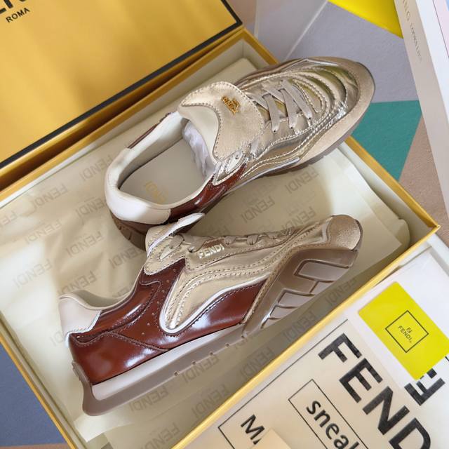 顶级版本:女款440男款 Fendi芬迪 Wave Pulse系列 喷墨 翻盖 马毛 情侣款 休闲 运动鞋 阿甘鞋 Fendi Wave Pulse系带低帮运动鞋。高科技布料,饰灰色图形印花和同色系绒面材质嵌饰。撞色黑色卡瓦利诺小牛皮细节,翻折鞋舌。灰色混色管状系带。侧面饰有三维橡胶标志,鞋舌饰有金色金属Fendi标志。黑色橡胶跑鞋鞋底,侧面采用环绕式边缘设计,饰有对角F图案 配送专柜精美包装 面料: 原版定制进口头层牛皮 内里: 原版定制柔软羊皮里 大底: 原版开模防滑Tpu材质 底厚: 2Cm Siz