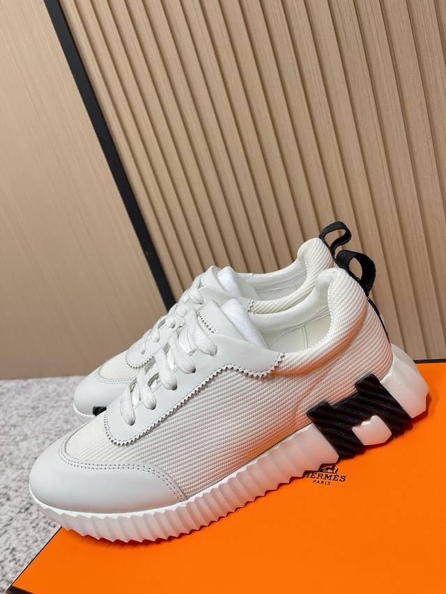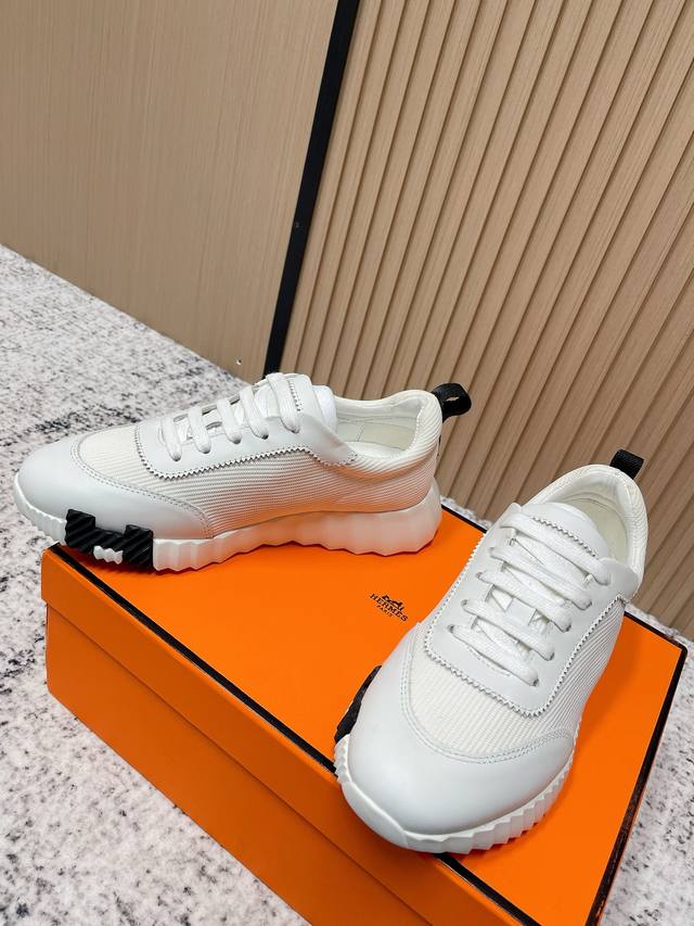 顶级版本:女 男 Hermes 爱马仕 H家25Ss新款情侣运动休闲鞋跑步鞋~市场顶级版本 经典运动风格+英伦拼色设计,经典耐看!原版倒模楦型,极致1:1形体,进口高端织针呈现出精致质感!开模定制A级高密私模大底,奢华包装! 面料:原版定制透气网+进口羊绒 内里:原版定制羊皮 垫脚:羊皮注塑成型 大底:原版开模Tpo发泡吸模大底 码数:35-46 女40.41.男45.46订做不退换