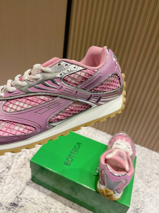 顶级版本:女 Bottega Veneta 葆蝶家 2025Ss新款 Bv Orbit系列情侣款复古网面休闲运动鞋跑步老爹鞋 顶级版本原版购入开发做货 Bv以90年代自由随性的复古风格为灵感,推出全新的中性运动鞋Orbit系列,在保证休闲舒适的同时,不乏造型设计的精细雕琢,搭配甄选网纱面料呼应品牌标志性Intreccio编织元素,以此实现轻盈的脚感,在穿着舒适的同时,还可以优雅修饰足部线条,更能自由搭配裤装或裙装,轻松驾驭多种日常风格! 面料:原版定制科技金属面料+网面 内里:原版进口透气网里 鞋底:原版