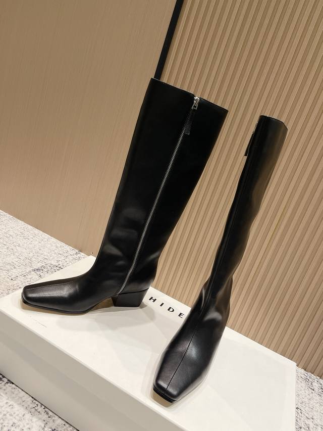 / 顶级版本: 25S秋冬新款Hidemi 极简风方头粗跟长靴侧拉链直筒骑士靴 以简约不失优雅的设计,诠释着经典法则,能搭配多种风格服饰,满足不同场合的穿着需求。经