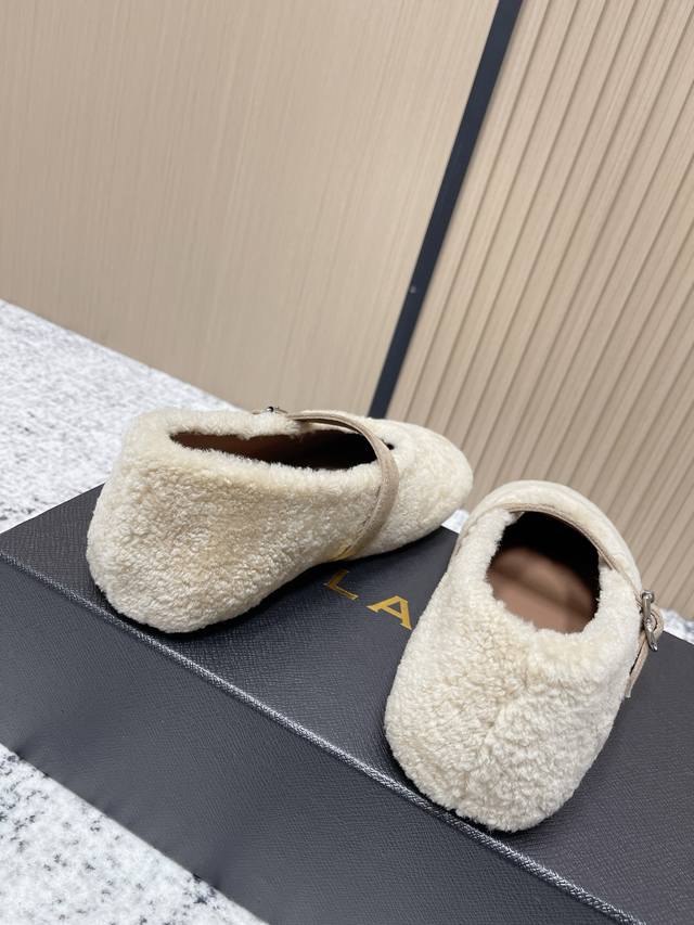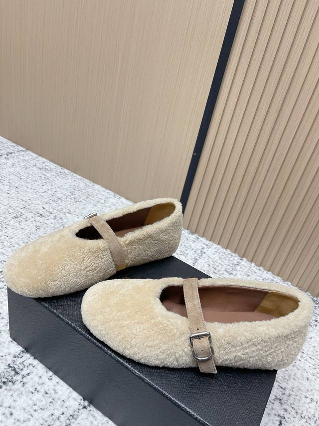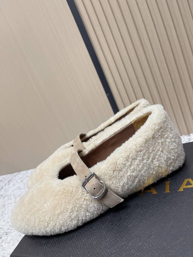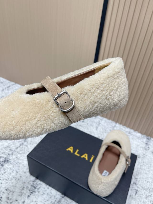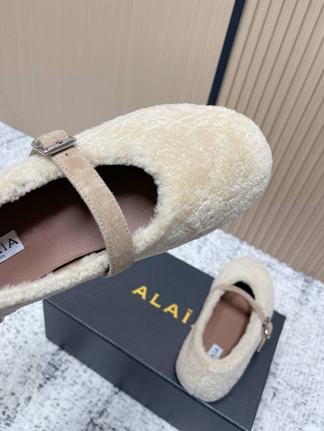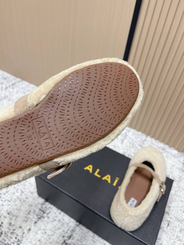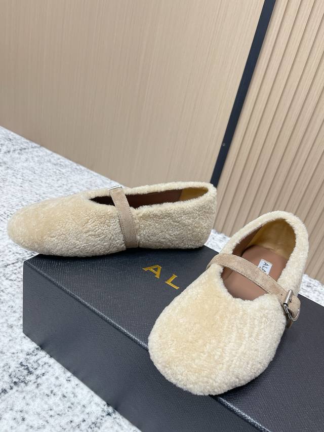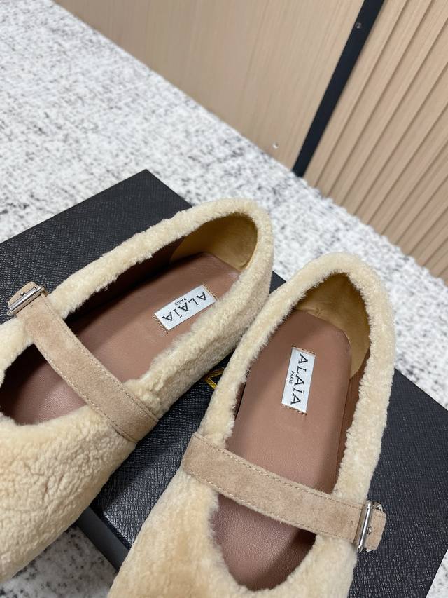 顶级版本: Alaia阿莱亚 羊羔毛法式芭蕾舞鞋羊毛面玛丽珍平底单鞋老钱风 原本更具有柔美浪漫气息的芭蕾平底鞋采用麂皮绒鞋面,传统的芭蕾风格具有了更多施展的可能