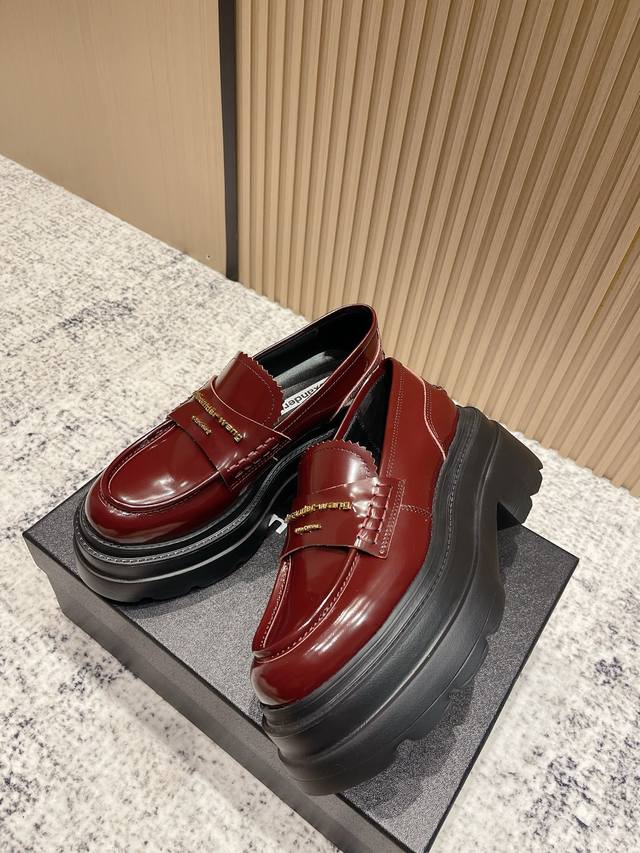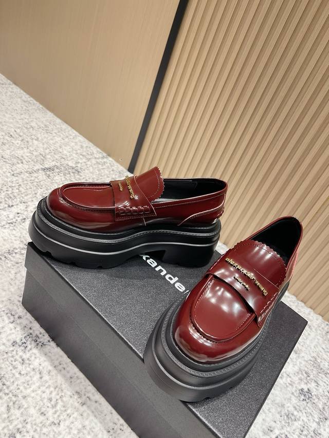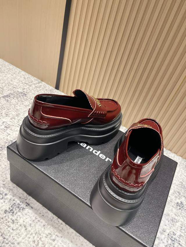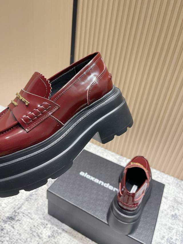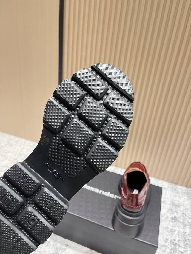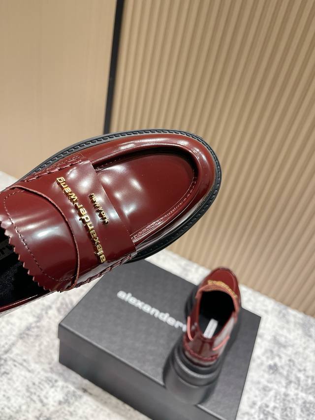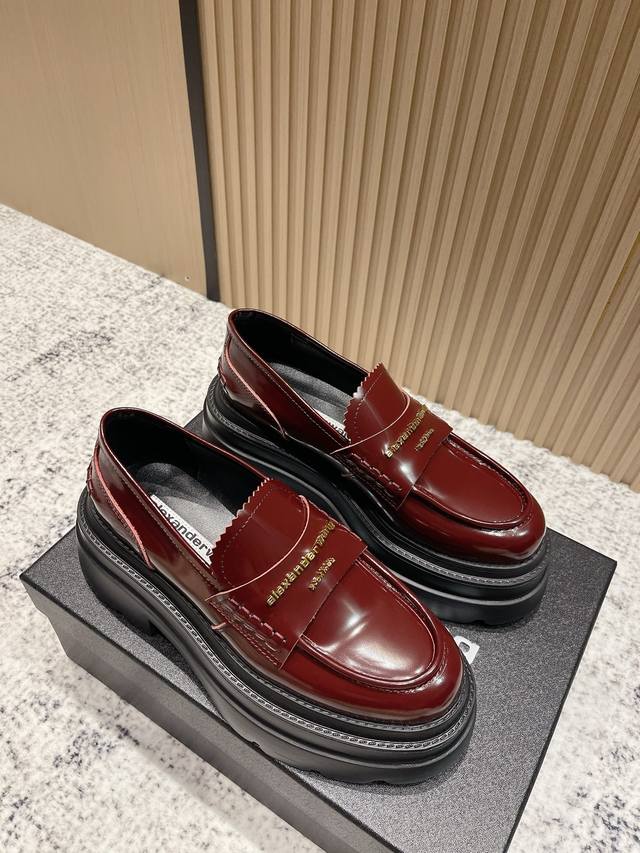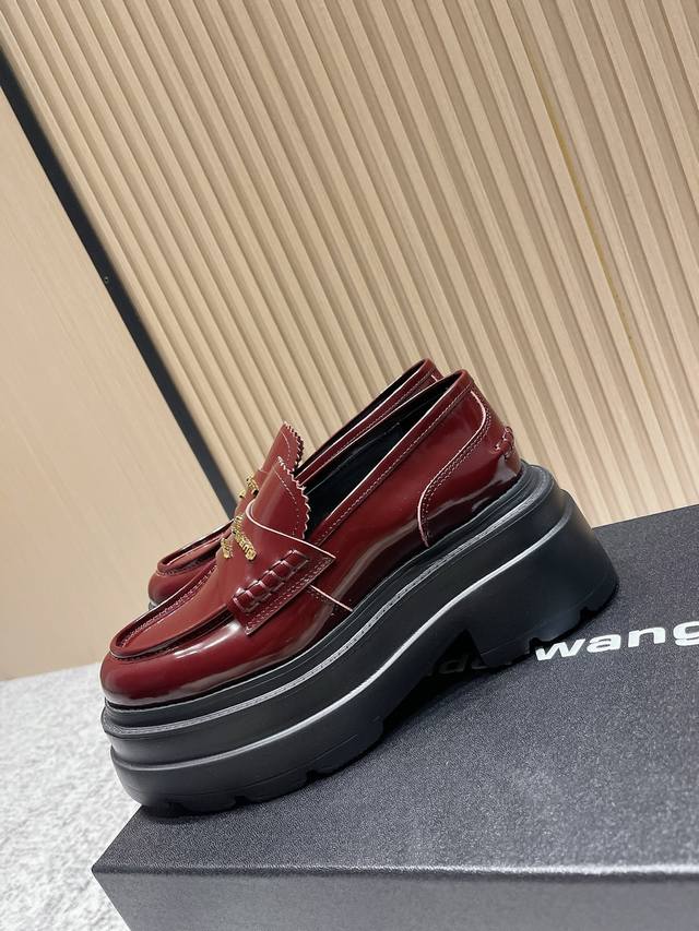 顶级版本: Alexande* Wang Aw Carter亚历山大王防水台松糕厚底乐福鞋 一脚蹬乐福鞋 Jennie 大王这双厚底乐福鞋好绝 Jennie近日出西果冻。同款乐福鞋来自压力山大王 Haileybieber撞鞋!这双炒股神器就是来袭Alexander Wang 2025秋冬最新款Carter厚底乐福鞋,绝对是腿精必备神器。 新款相比之前的老款和你家的显高显瘦,除了经典黑色外,还有酒红色,都是低调白搭的配色 亮皮皮哥搭配标志性的品牌金属徽标,加上7.5Cm厚底设计轻松拥有大长腿! 鞋面:原版开