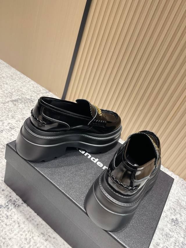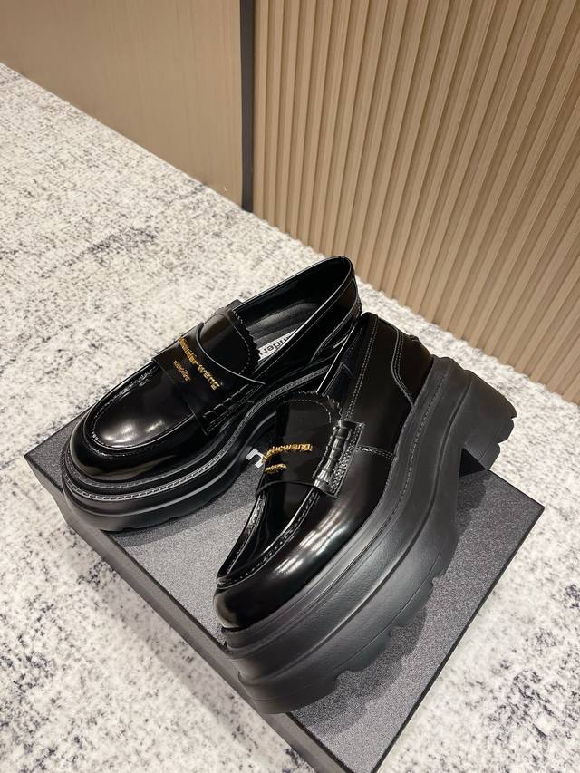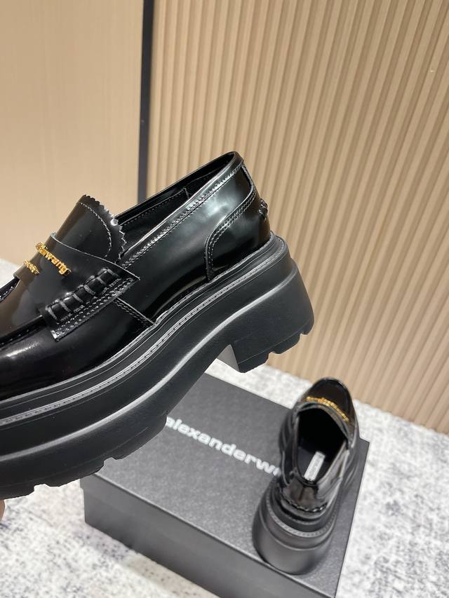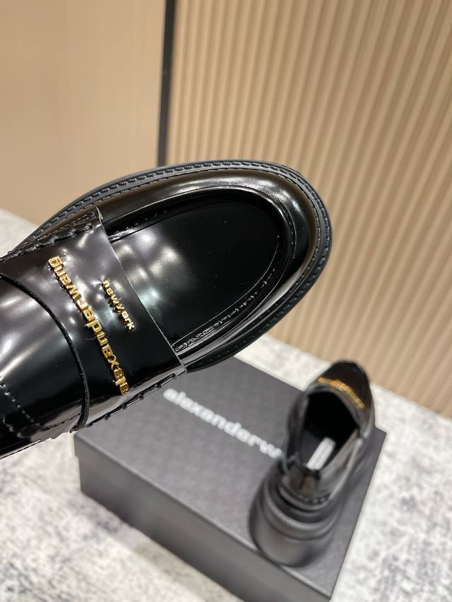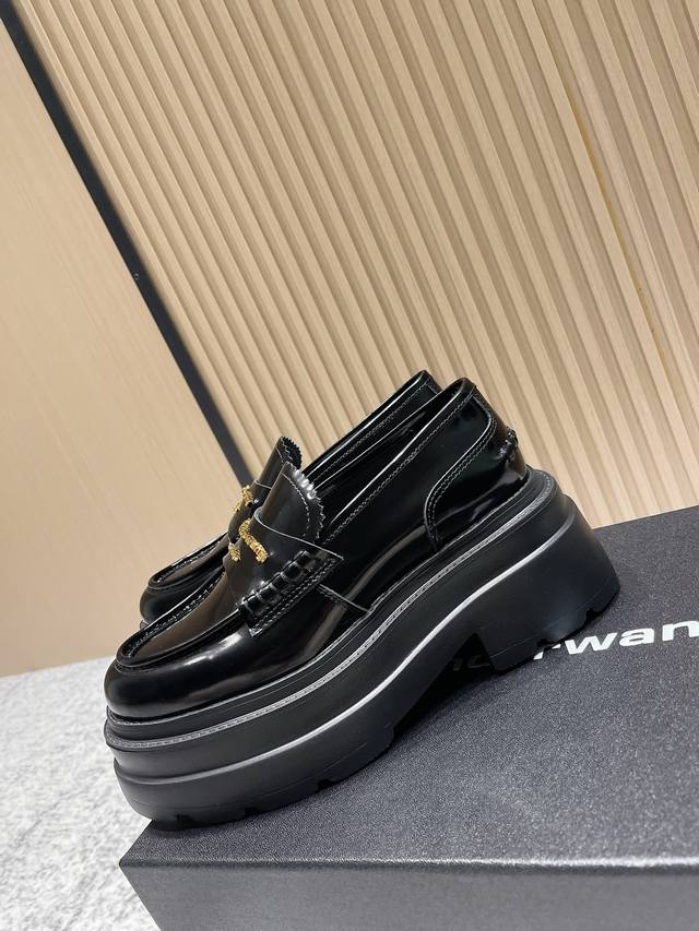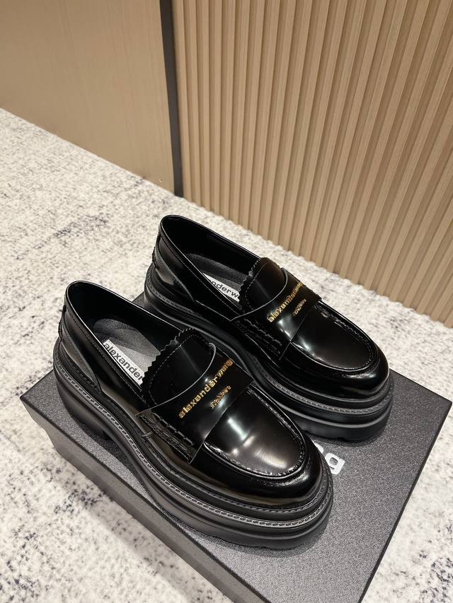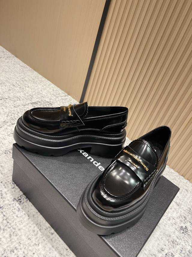 顶级版本: Alexande* Wang Aw Carter亚历山大王防水台松糕厚底乐福鞋 一脚蹬乐福鞋 Jennie 大王这双厚底乐福鞋好绝 Jennie近日出西果冻。同款乐福鞋来自压力山大王 Haileybieber撞鞋!这双炒股神器就是来袭Alexander Wang 2025秋冬最新款Carter厚底乐福鞋,绝对是腿精必备神器。 新款相比之前的老款和你家的显高显瘦,除了经典黑色外,还有酒红色,都是低调白搭的配色 亮皮皮哥搭配标志性的品牌金属徽标,加上7.5Cm厚底设计轻松拥有大长腿! 鞋面:原版开