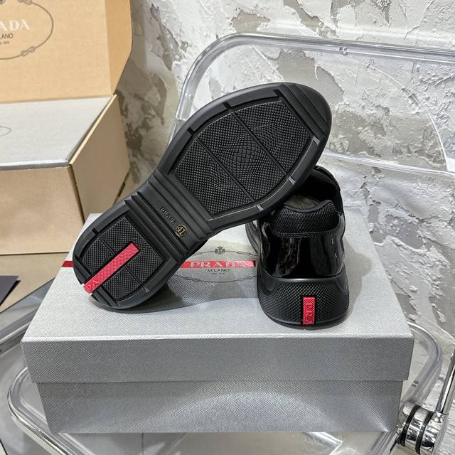 顶级版本 America's Cup最帅美洲杯系带运动休闲通勤跑鞋 妥妥的老钱Feel!进口牛漆皮材质,亮面鞋面色彩鲜明,超软超舒服,特别好穿,根本脱不下来,整体自重很轻,脚感轻盈!日常通勤再适合不过了 原代工渠道鞋型,原材料组合,面料牛皮,内里透气网布,垫脚水染牛皮原版Ip发泡大底。 Size:39-44 45 46定做不退不换