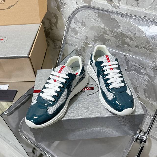 顶级版本 America's Cup最帅美洲杯系带运动休闲通勤跑鞋 妥妥的老钱Feel!进口牛漆皮材质,亮面鞋面色彩鲜明,超软超舒服,特别好穿,根本脱不下来,整体自重很轻,脚感轻盈!日常通勤再适合不过了 原代工渠道鞋型,原材料组合,面料牛皮,内里透气网布,垫脚水染牛皮原版Ip发泡大底。 Size:39-44 45 46定做不退不换