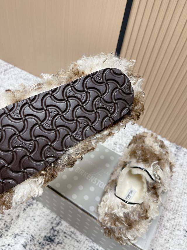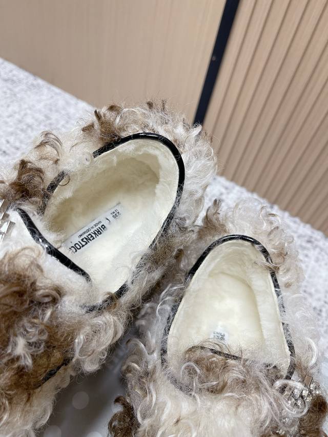顶级版本: Birkenstock 博肯 潮流时尚 休闲毛毛鞋 人体工程学设计符合脚形的脚床,软木材质穿着超级轻便舒适,楦形线条优美,做工精致,长时间穿着不累脚