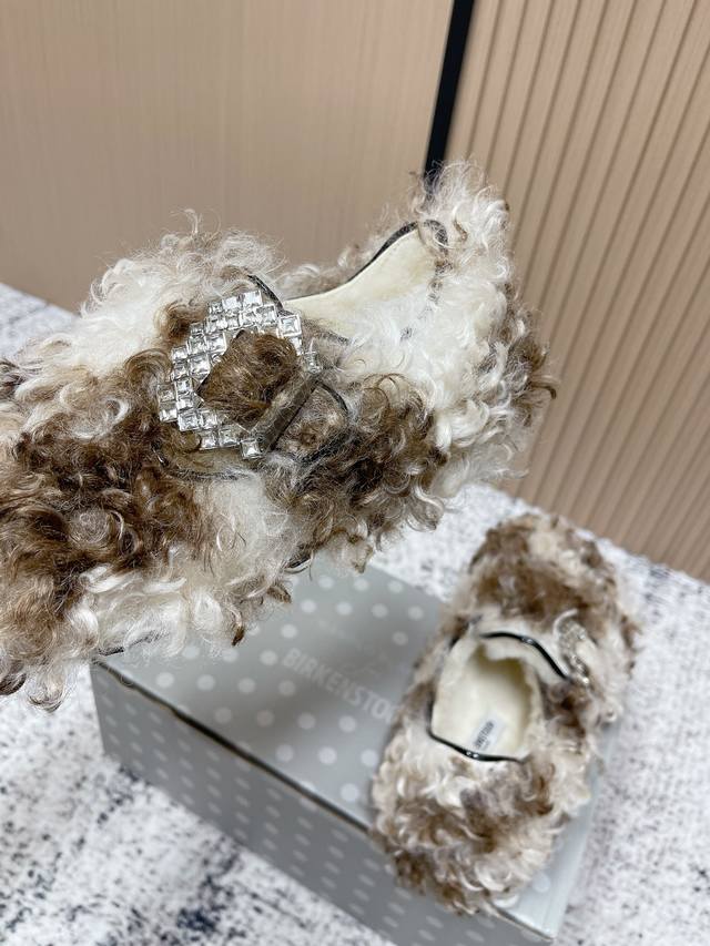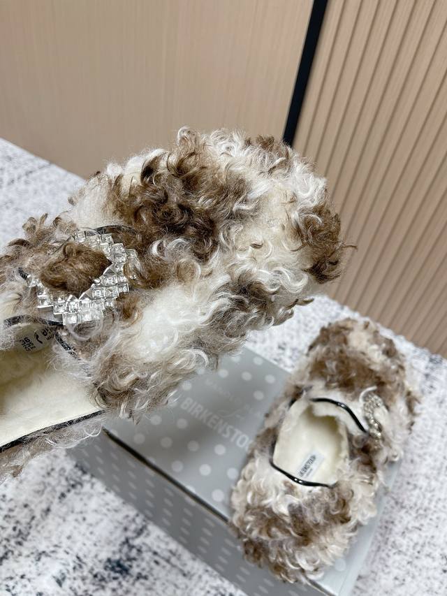 / 顶级版本: Birkenstock 博肯 潮流时尚 休闲毛毛鞋 人体工程学设计符合脚形的脚床,软木材质穿着超级轻便舒适,楦形线条优美,做工精致,长时间穿着不累脚