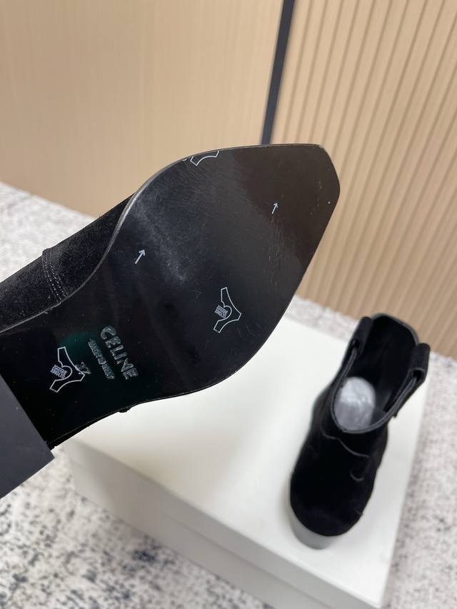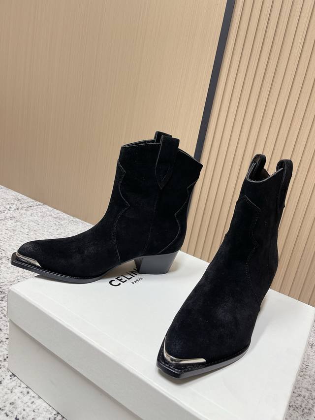 顶级版本: Celine*赛琳 2025Ss秋冬专柜新款英伦风复古高跟短靴骑士靴 集现代、传统与酷炫风格与一身。其标志性设计采用了上乘材质,具有敏锐独道的细节设计,成品极具流行风潮,能承受时间的检验,早秋力推单品,搭配连衣裙,Skinny Jeans潮人必备 进口小牛皮 高丝光反绒皮 超细腻的牛皮内里 原版层皮包跟意大利奢华真皮大底 全皮制作只为高端定制跟高6.5Cm左右 Size:35-39 40.41订做不退换