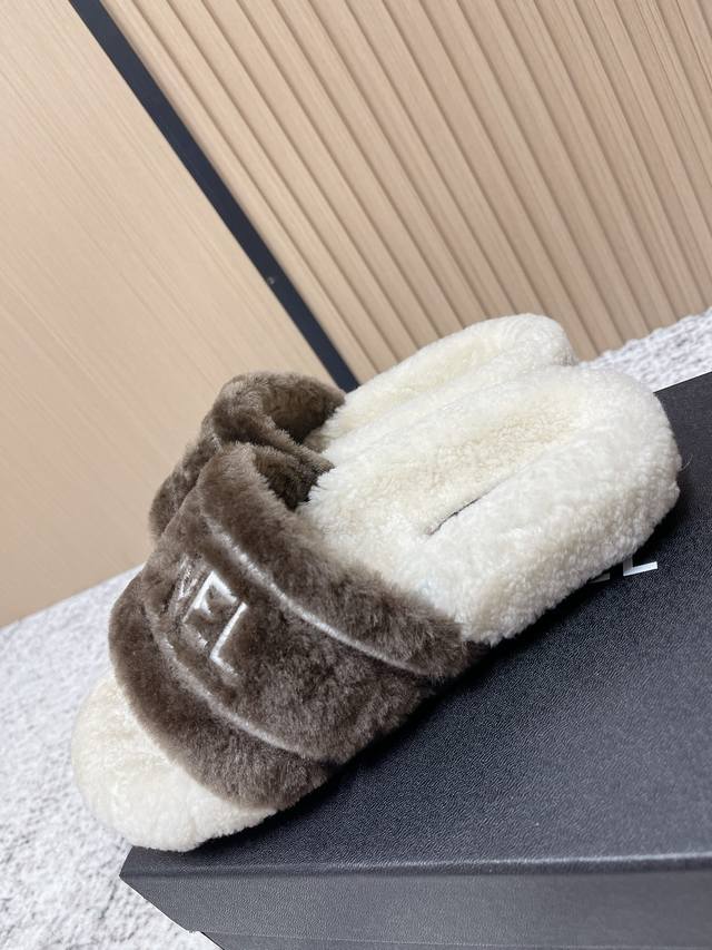 顶级版本: Chanel 香奈儿 25Ss秋冬新款羊毛毛拖 上脚依然让我心甘情愿剁手入,购入手才会知道它的时髦,人气爆款必须得有它排名,各种博主、网红范搭配尽显眼前,超级推荐款!双层加厚大底, 鞋面选用羊羔毛,内里羊毛, 码数:35-39 40定做