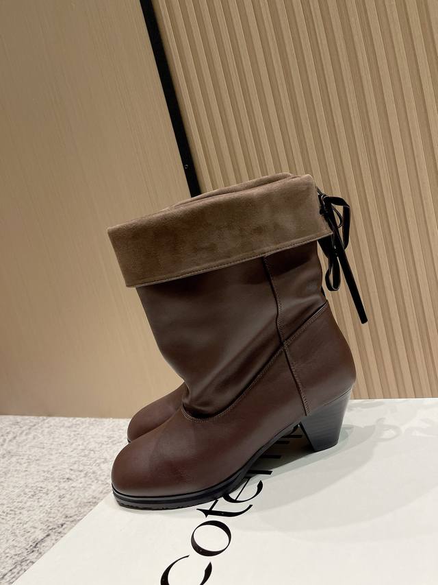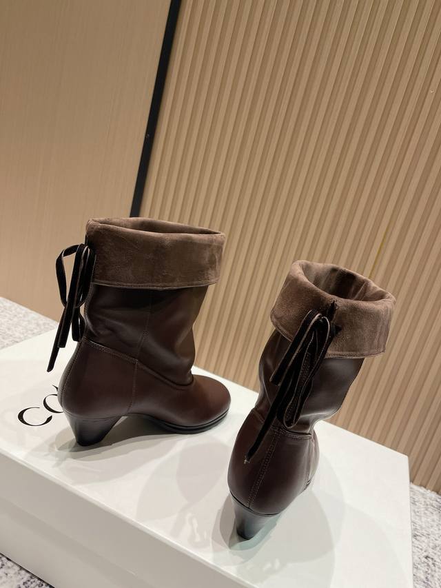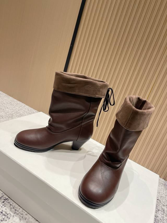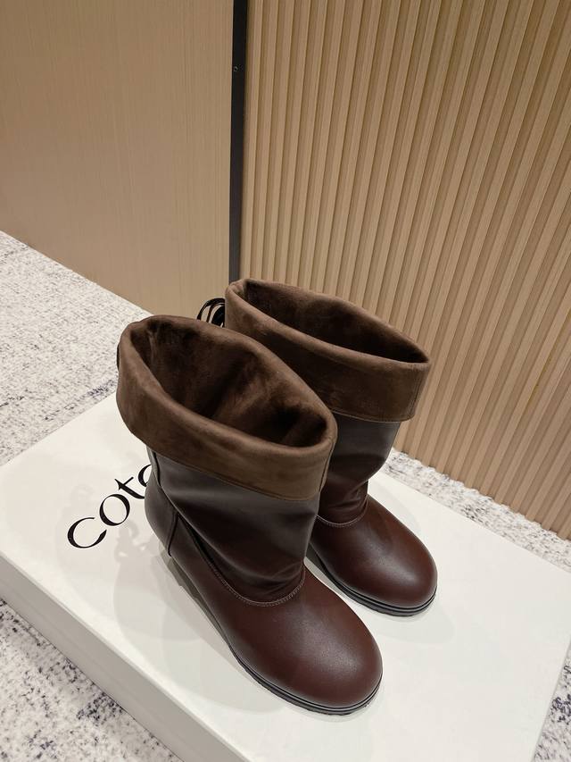 / 顶级版本: Cotemp Winfair 25 Aw 圆头褶皱靴 细纹牛皮呈现细腻均匀的光泽。靴筒内外拼皮设计,展现柔软层次的碰撞。延续 Cotemp设计开发的