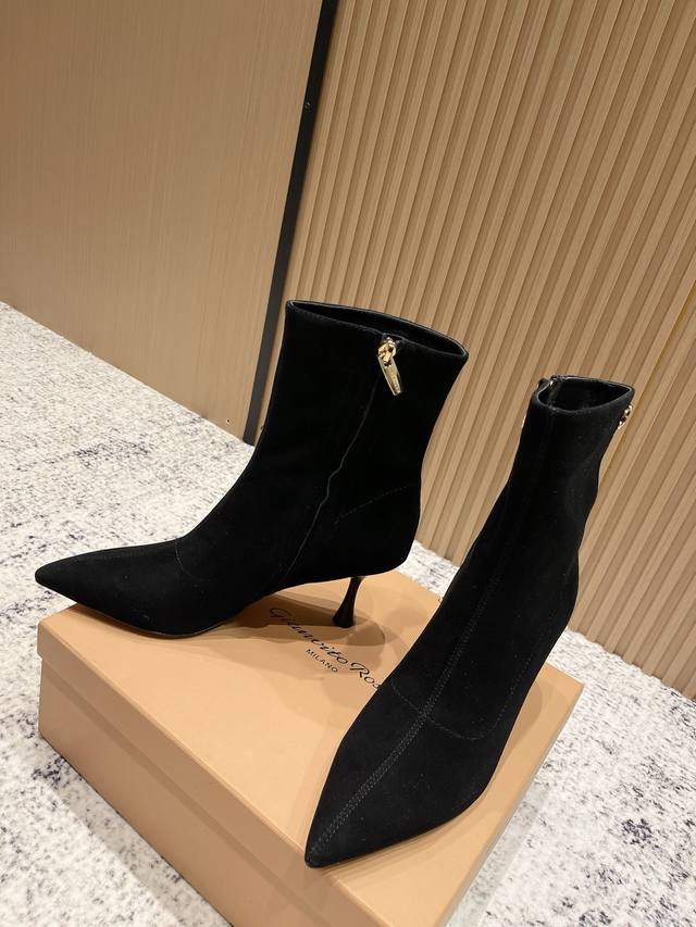 / 顶级版本: Gianvito Rossi 吉安维托 罗西 Gr尖头侧拉链短靴 素面设计,简单大方。时尚亮点! 秉承了其传统意大利工艺,专注精巧细节,打造优雅女人