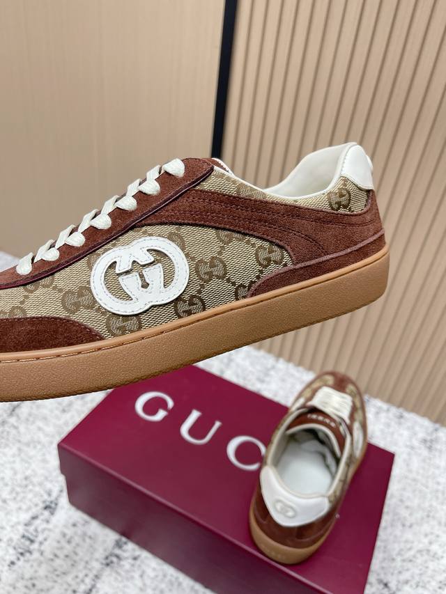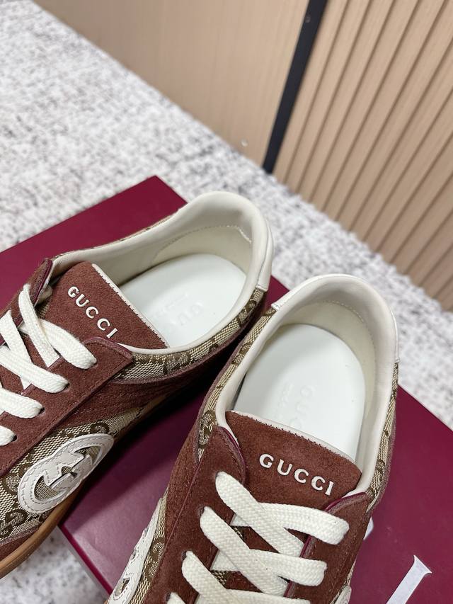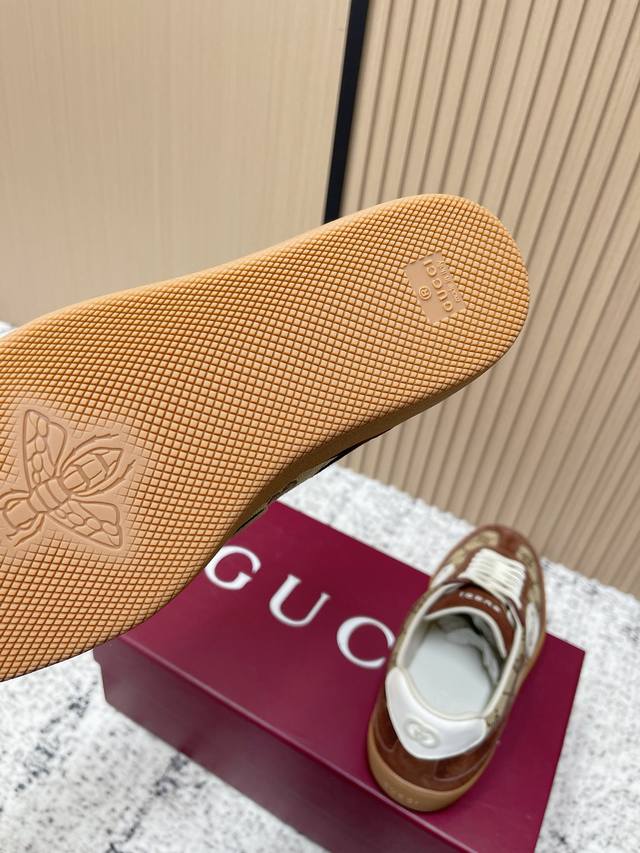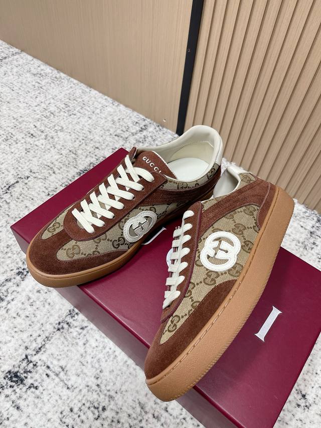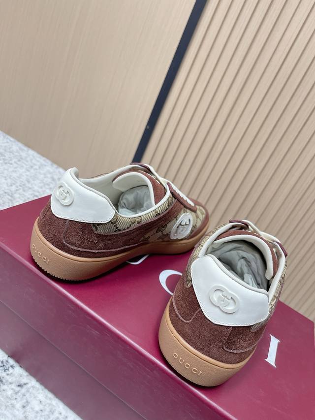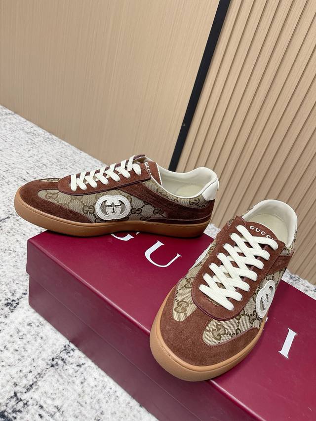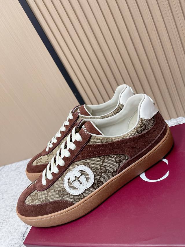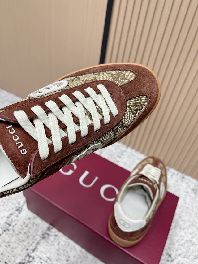 / 顶级版本: Gucci古驰 最新款 双G 情侣款 休闲 运动鞋 德训鞋 阿甘鞋 鞋面采用创新缝线工艺制作 打造如水般的流动质感 皮革设计搭配三维立体互扣式双G皮