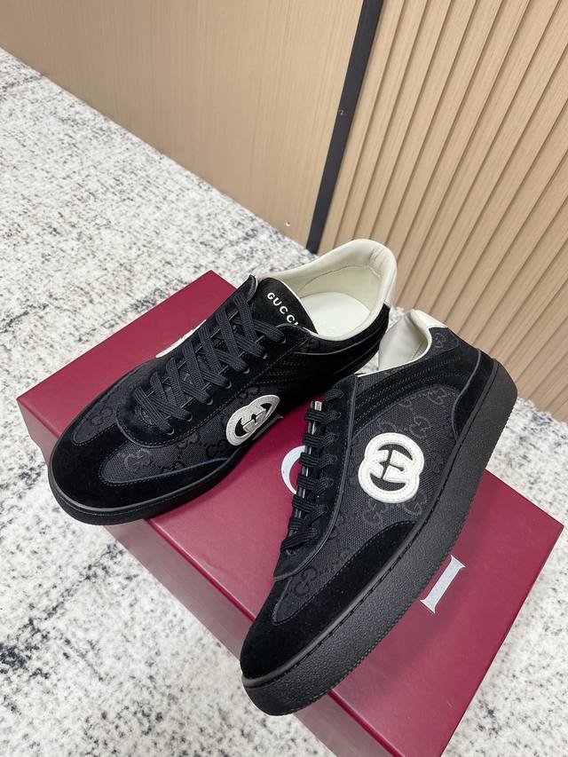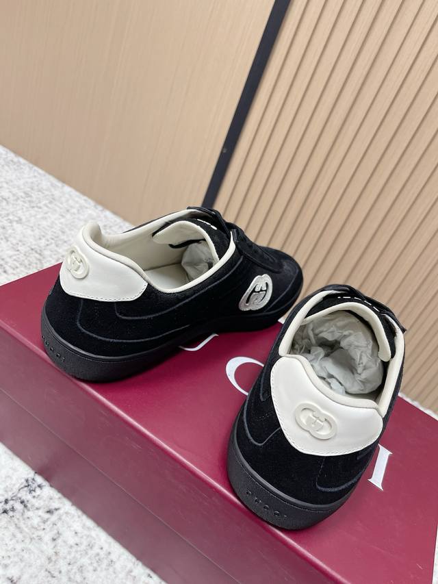顶级版本: Gucci古驰 最新款 双G 情侣款 休闲 运动鞋 德训鞋 阿甘鞋 鞋面采用创新缝线工艺制作 打造如水般的流动质感 皮革设计搭配三维立体互扣式双G皮