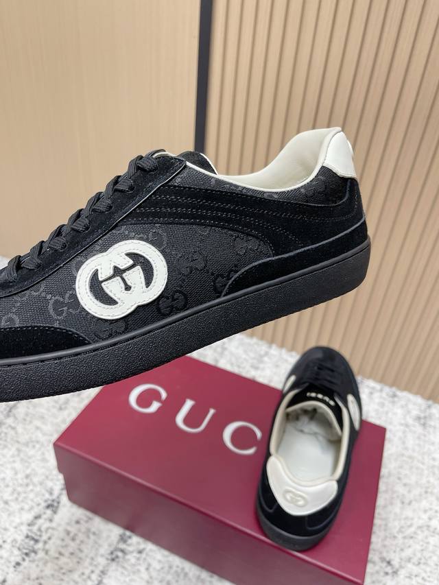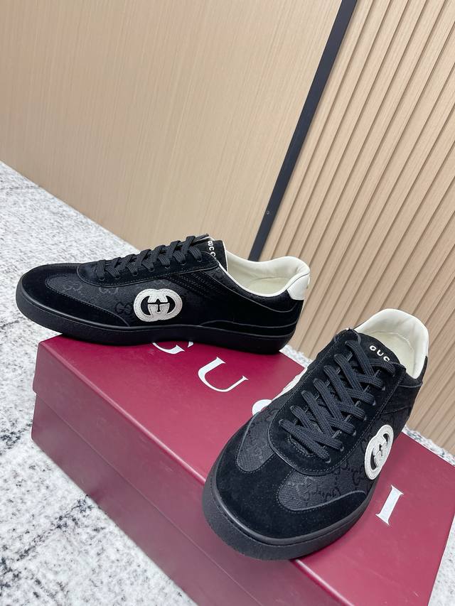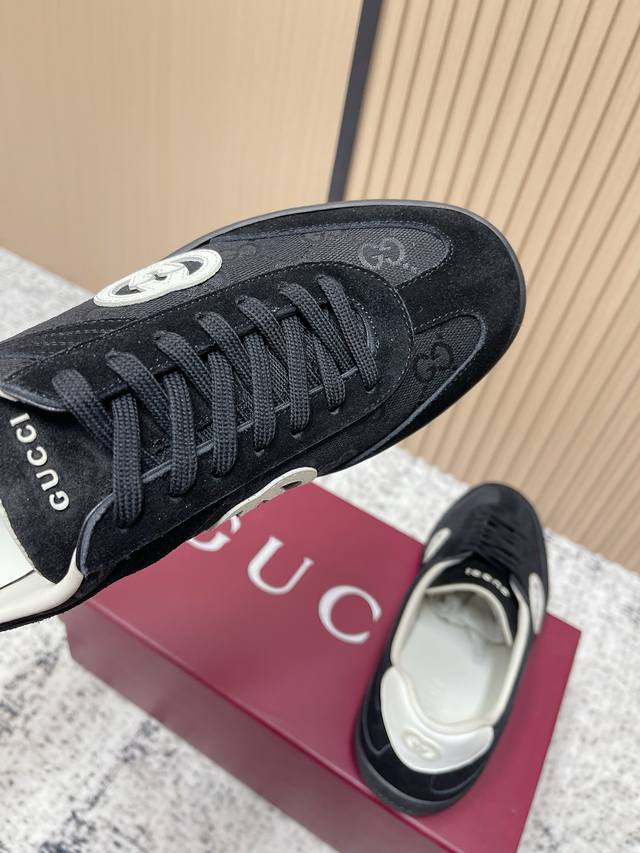 / 顶级版本: Gucci古驰 最新款 双G 情侣款 休闲 运动鞋 德训鞋 阿甘鞋 鞋面采用创新缝线工艺制作 打造如水般的流动质感 皮革设计搭配三维立体互扣式双G皮