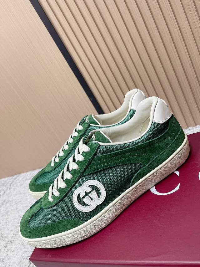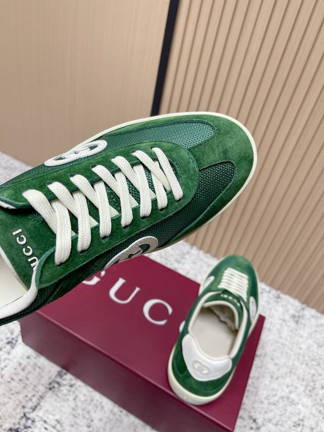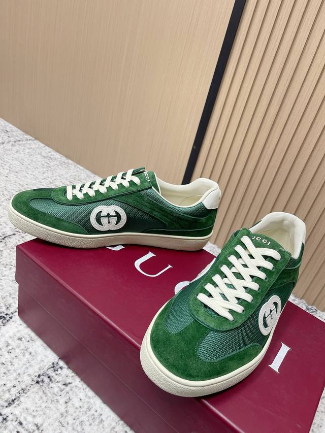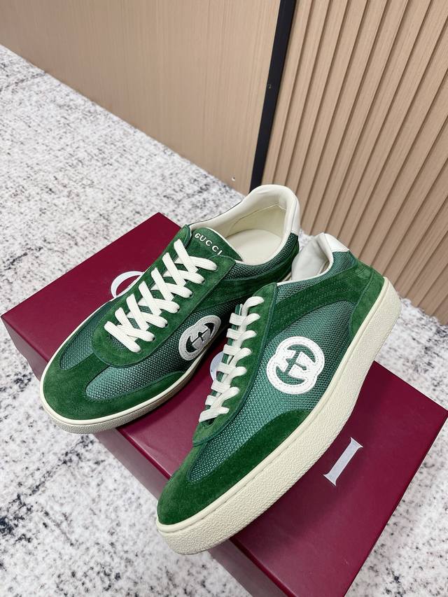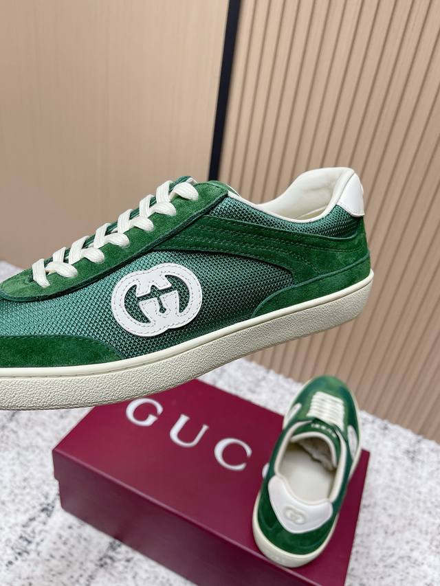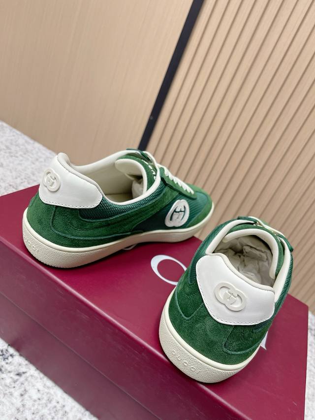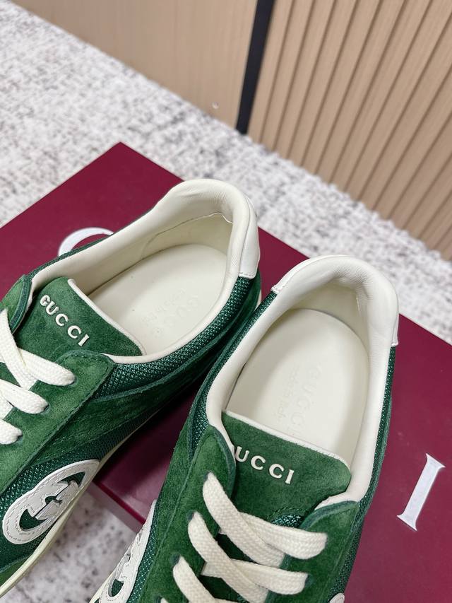 / 顶级版本: Gucci古驰 最新款 双G 情侣款 休闲 运动鞋 德训鞋 阿甘鞋 鞋面采用创新缝线工艺制作 打造如水般的流动质感 皮革设计搭配三维立体互扣式双G皮