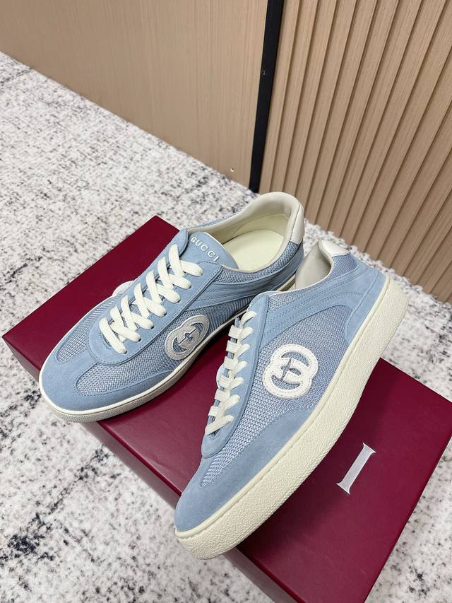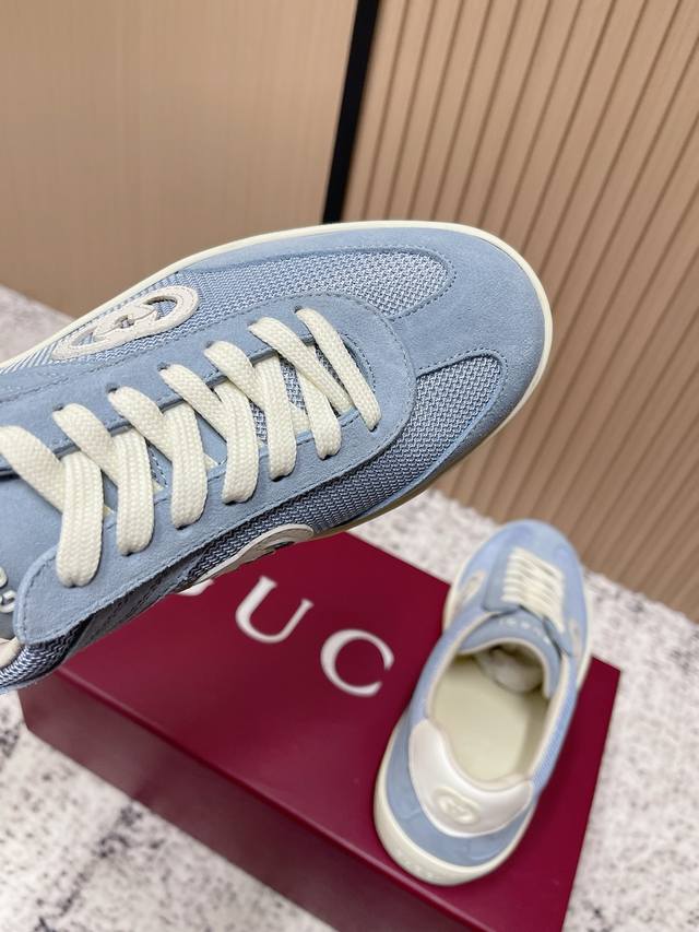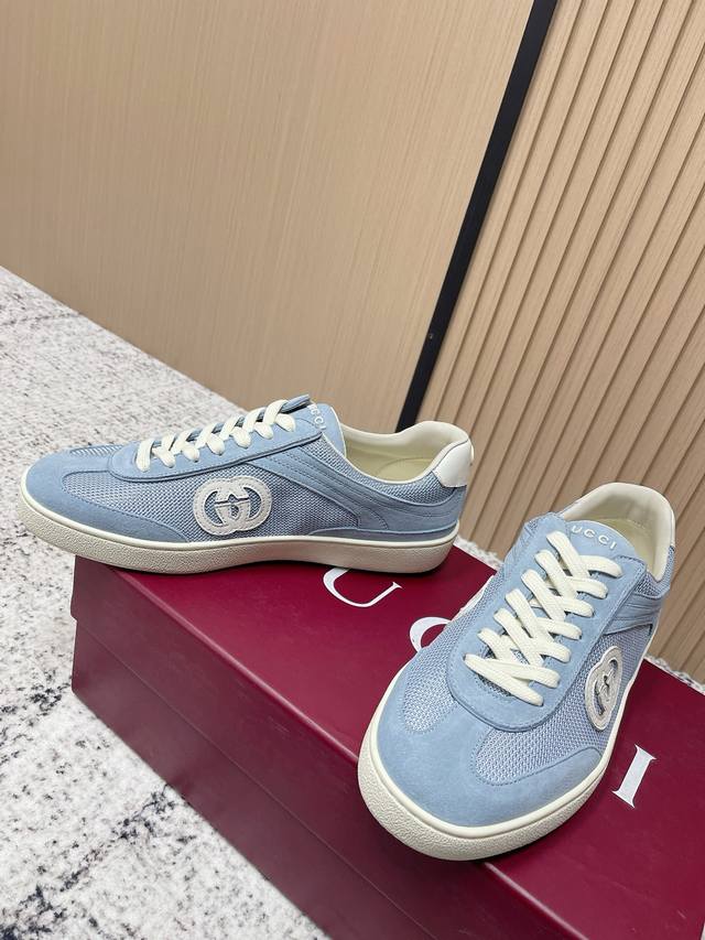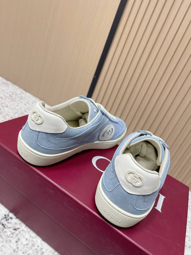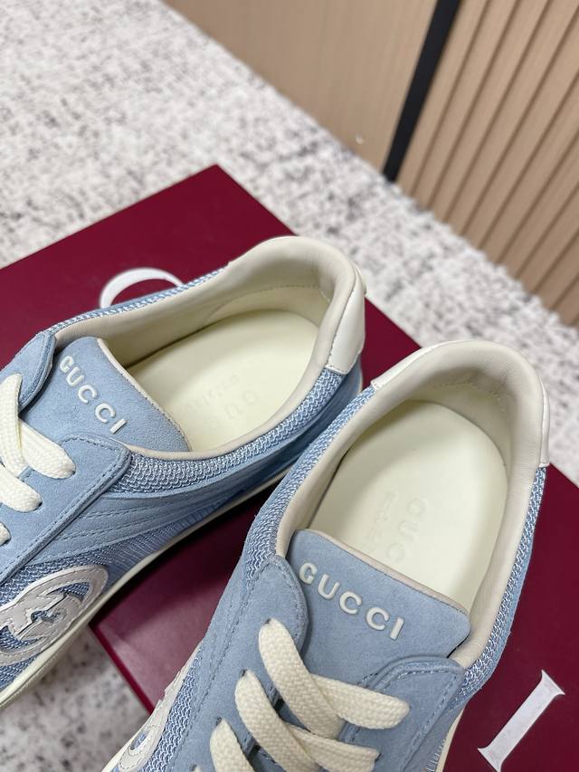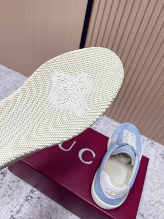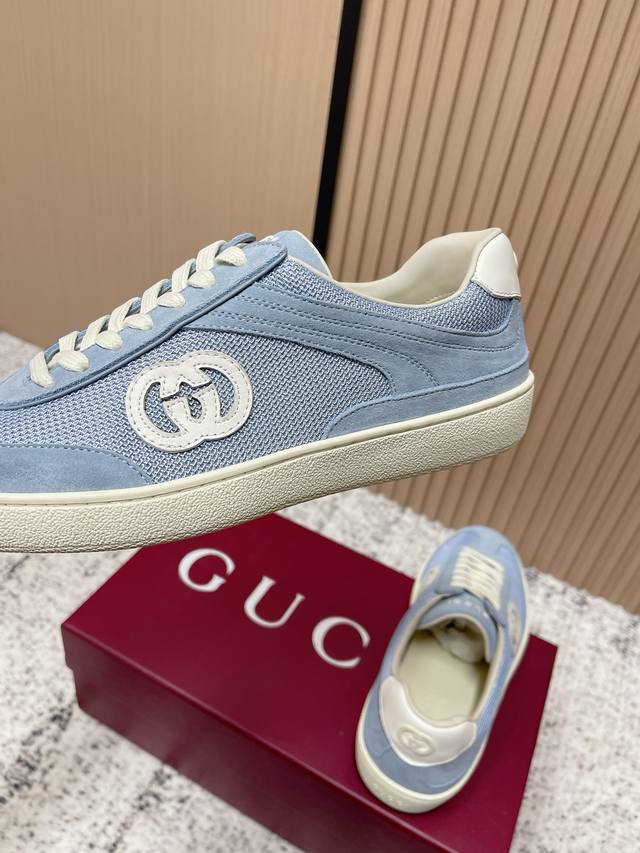 顶级版本: Gucci古驰 最新款 双G 情侣款 休闲 运动鞋 德训鞋 阿甘鞋 鞋面采用创新缝线工艺制作 打造如水般的流动质感 皮革设计搭配三维立体互扣式双G皮