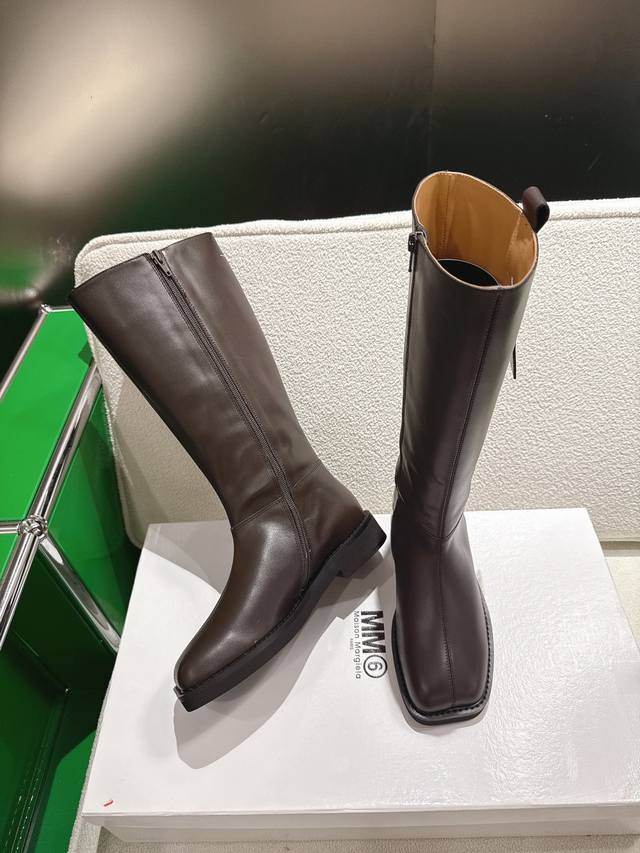 顶级版本 K049 Mm6 早秋新款高筒靴真的太爱了 牛皮长靴款 上脚真的不要太好看好吗? 鞋面牛皮 内里牛皮 真皮底 码数:35-39 40、41定做