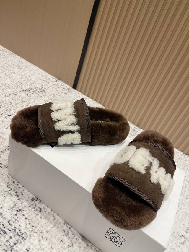顶级版本: Loewe 罗意威 25Ss 秋冬新款 字母印花 毛拖 Loewe罗意威这款毛毛拖鞋来了,大字母徽标印花,质量杠杠好的,一上脚有种被包裹的感觉,像踩在棉花上一样,这温暖的感觉真是居家的潮拖,分分钟一整个为它着迷了。 材料:进口羊毛 大底:原版开模底台+橡胶底片 Size:35-41 40 41定做不退换