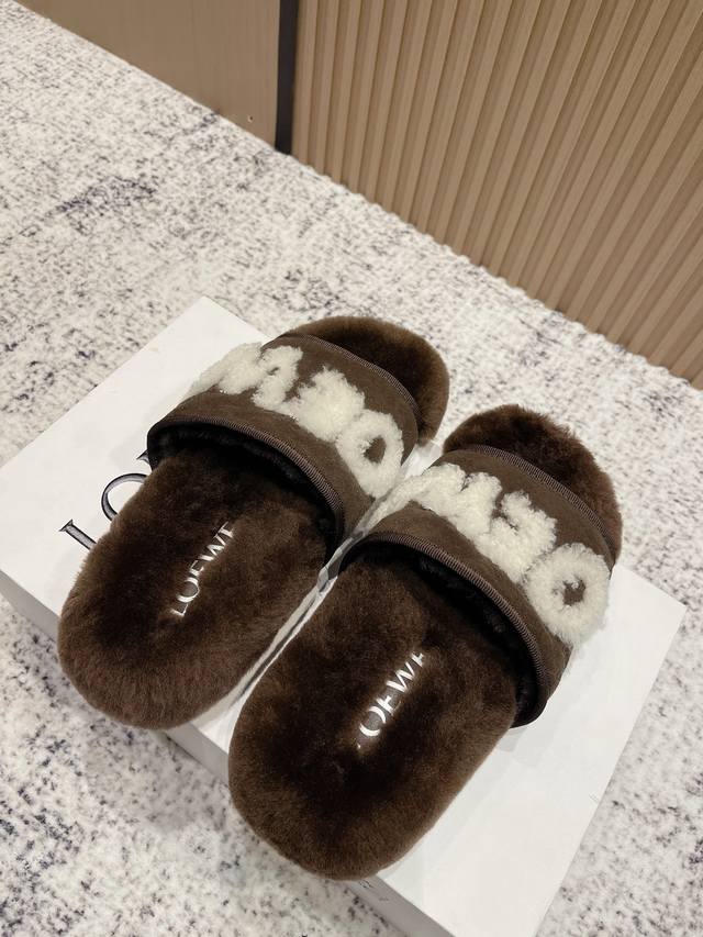 / 顶级版本: Loewe 罗意威 25Ss 秋冬新款 字母印花 毛拖 Loewe罗意威这款毛毛拖鞋来了,大字母徽标印花,质量杠杠好的,一上脚有种被包裹的感觉,像踩