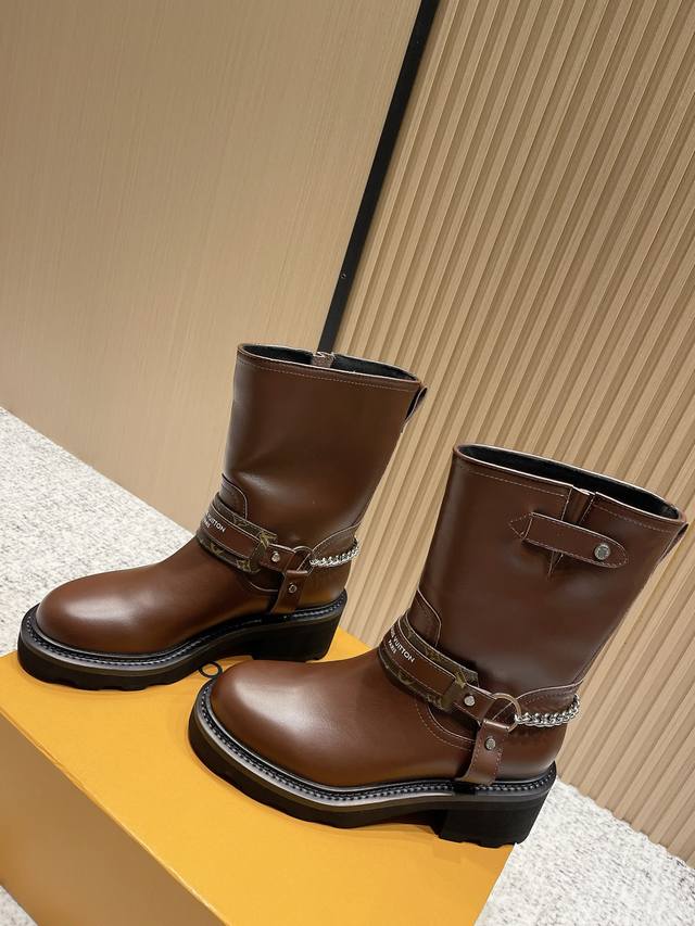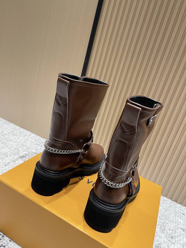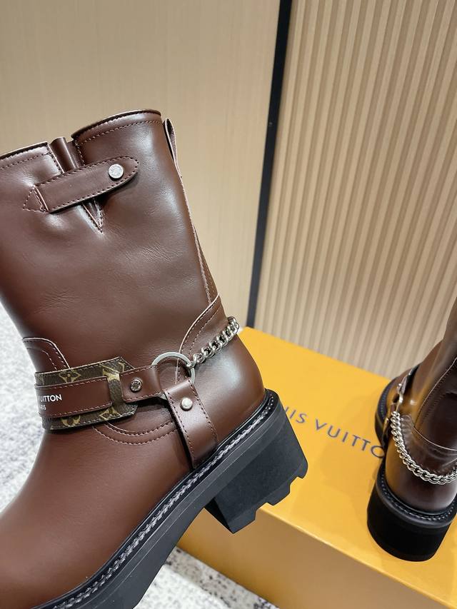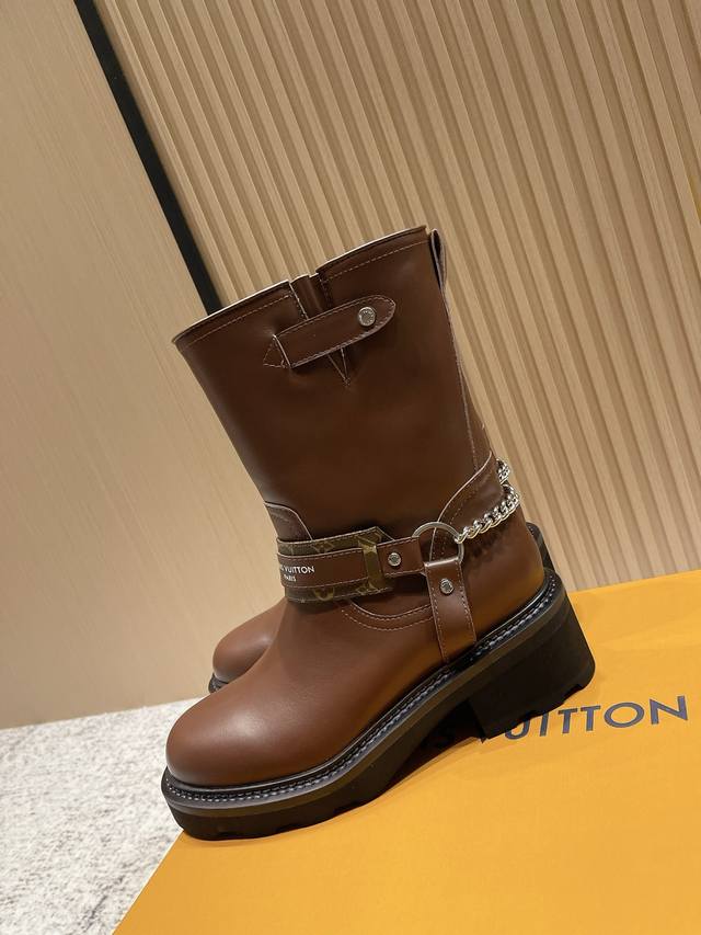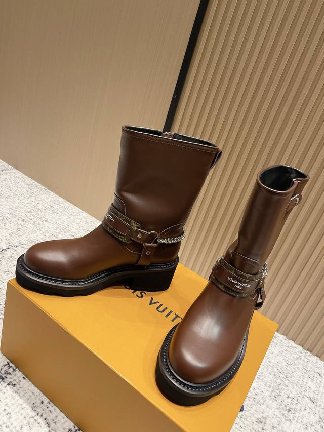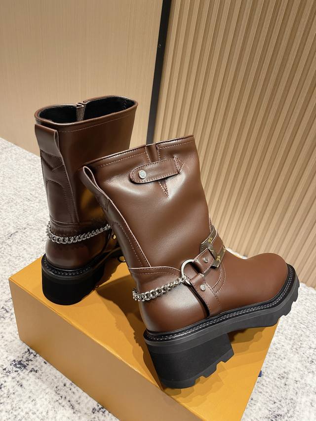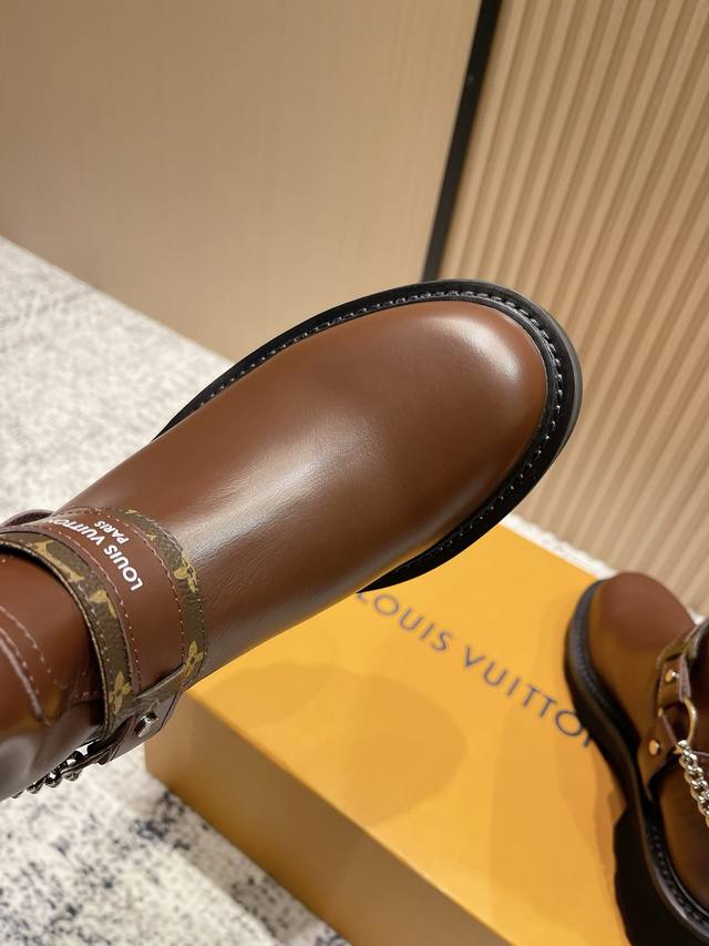 / 顶级版本: Lv驴牌 25Ss 新款秋冬链条切尔西短靴 楦型百搭瘦脚Yyds.造型立体饱满,气质满满 上脚舒适 非常复古风、气场十足,加原版老花设计风格非常经典