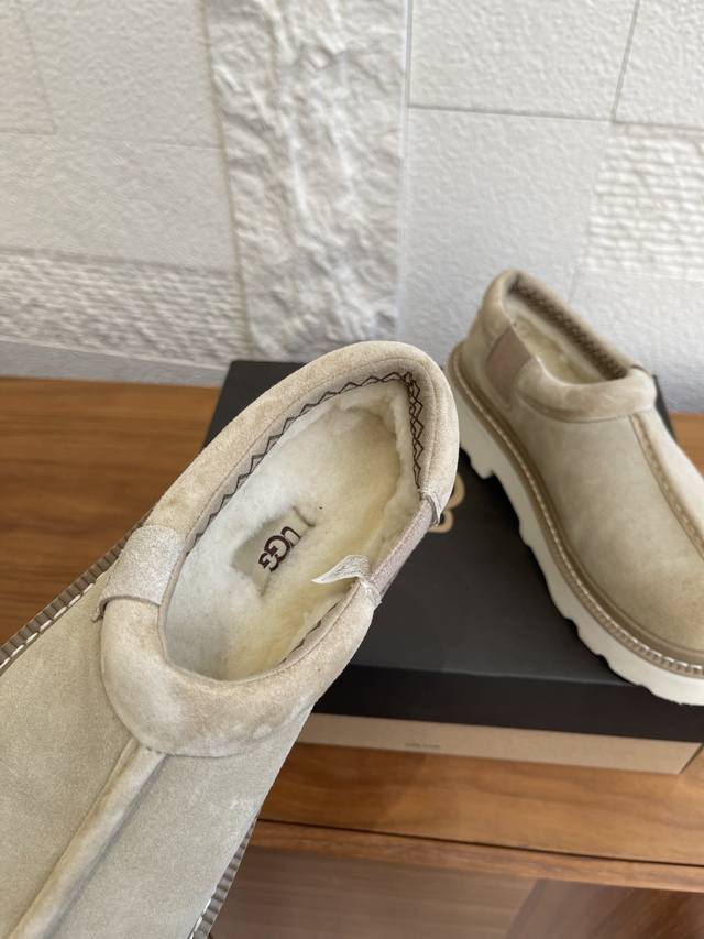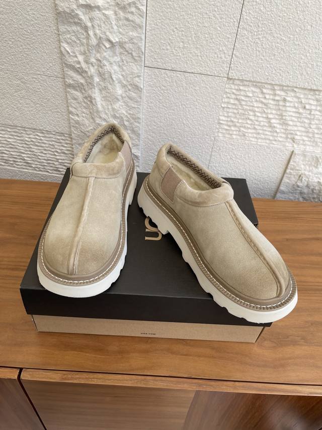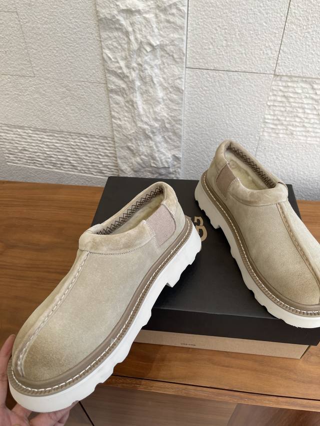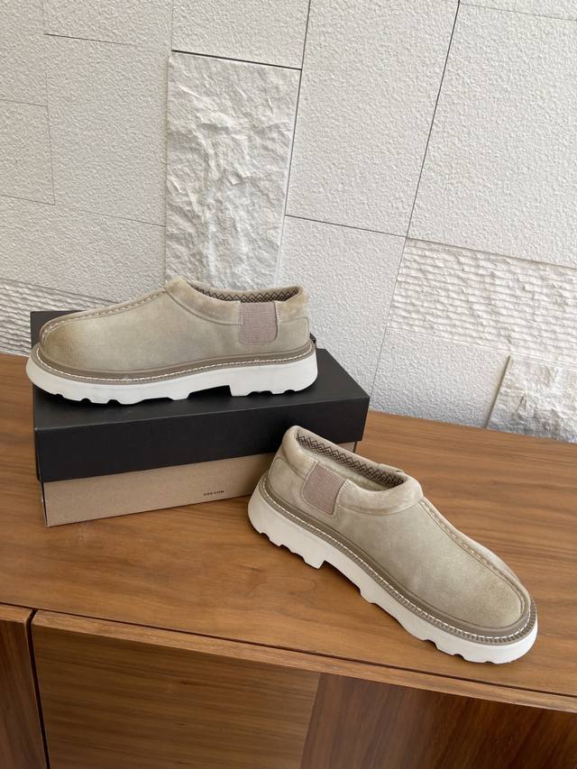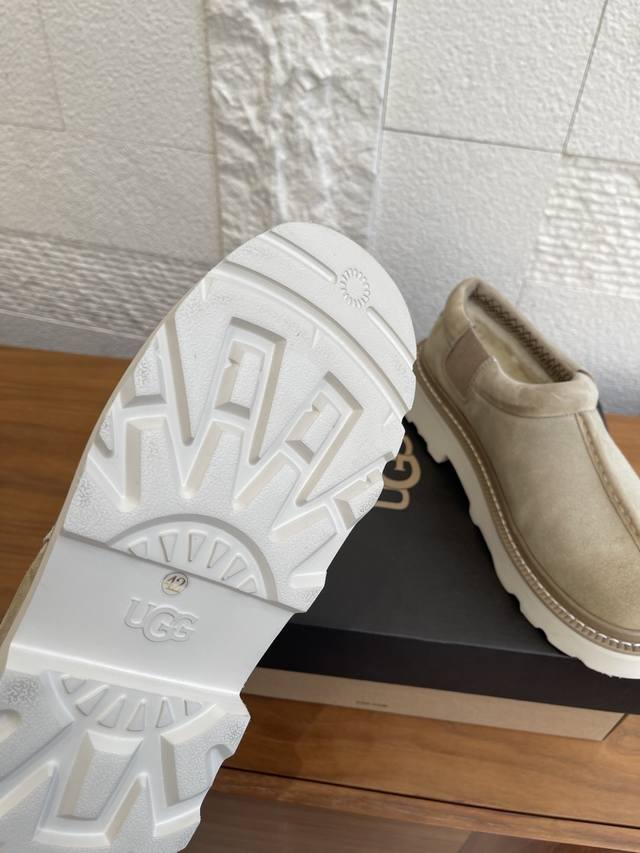 顶级版本: Ugg 2025 秋季新款 男女同款 Tasman Lug 塔斯曼 休闲款 一脚蹬 Ugg这款男女同款Tasman Lug 塔斯曼休闲款一脚蹬,方便穿脱,舒适造型。牛剖层翻毛皮鞋面+约17毫米Uggplush里衬、鞋垫,功能与保暖兼备。Eva外底防滑蛛网橡胶底,提供良好抓地力。 面料:进口牛反绒 内里:羊皮毛一体 大底:原版Eva发泡大底 Size:女35-40 40定做不退换 男39-45 45定做不退换