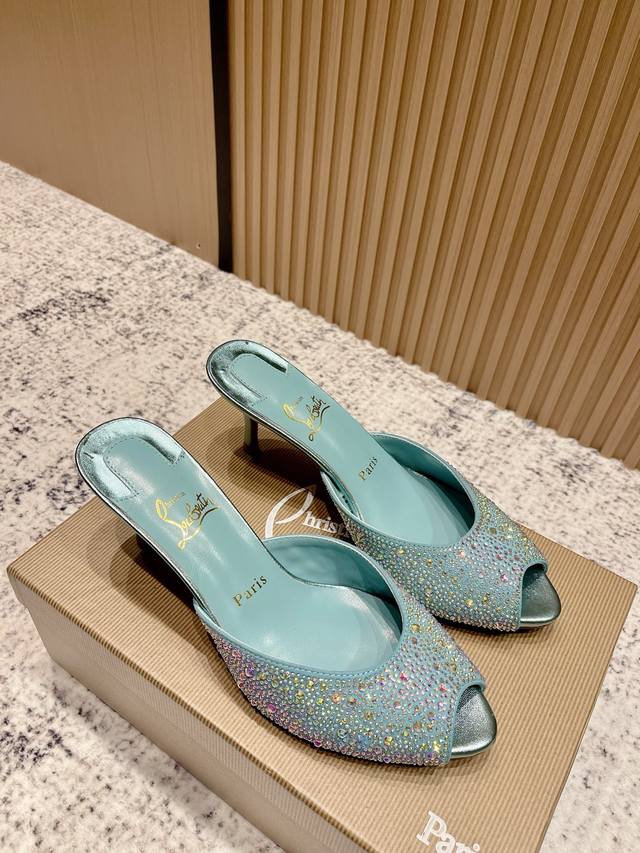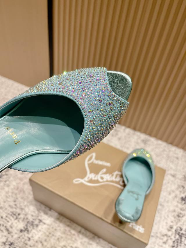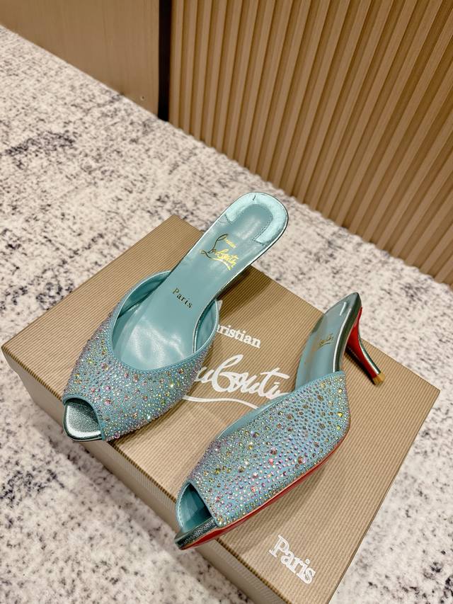 顶级版: Christian Louboutin 2025S原版做货重工Cl经典满钻鱼嘴高跟拖鞋~ 鞋面:两千多颗超闪水钻装饰鞋面,鱼嘴露趾的鞋头设计,调皮中带又带点性感,上脚既高级又百搭 材质:施华洛水钻 内里:粒面珠光羊皮里 大底:进口烤漆真皮大底 Size:34-43 34.40.41.42.43订做不退换 跟高:约5.5Cm 5 8 10Cm可选