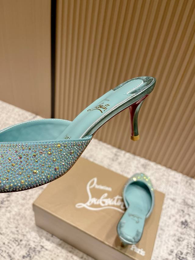 / 顶级版: Christian Louboutin 2025S原版做货重工Cl经典满钻鱼嘴高跟拖鞋~ 鞋面:两千多颗超闪水钻装饰鞋面,鱼嘴露趾的鞋头设计,调皮中带