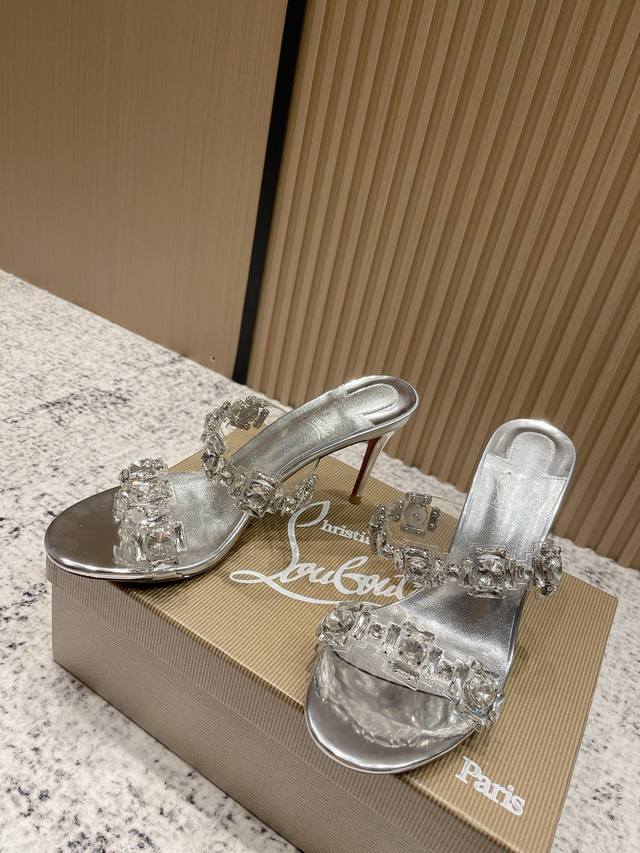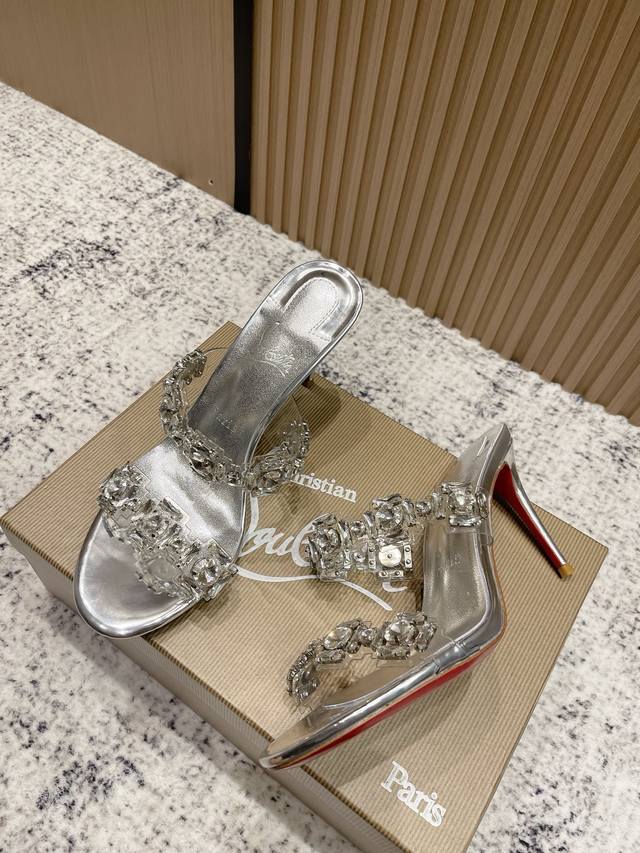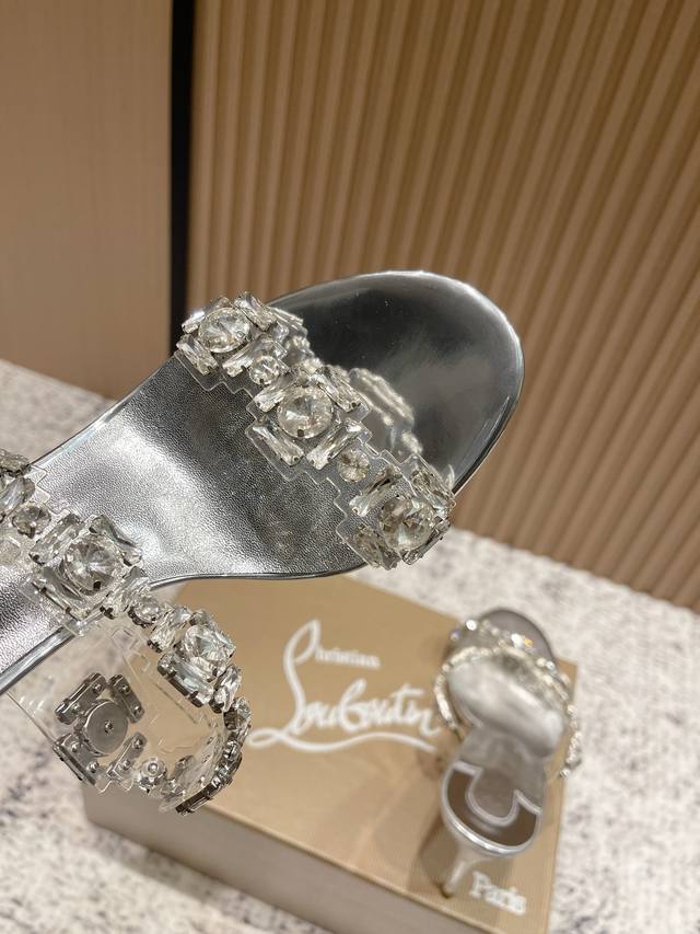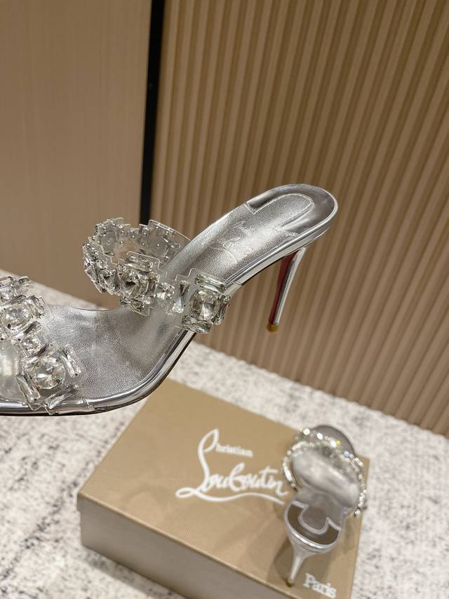 顶级版: Christian Louboutin 2025S原版做货重工Cljust Queen水晶高跟拖鞋 材质:进口Pvc+克里奥水钻 垫脚:粒面珠光羊皮里 大底:原版进口顶级真皮大底 Size:34-43 34.40.41.42.43订做不退换 跟高:约10Cm 8.5Cm