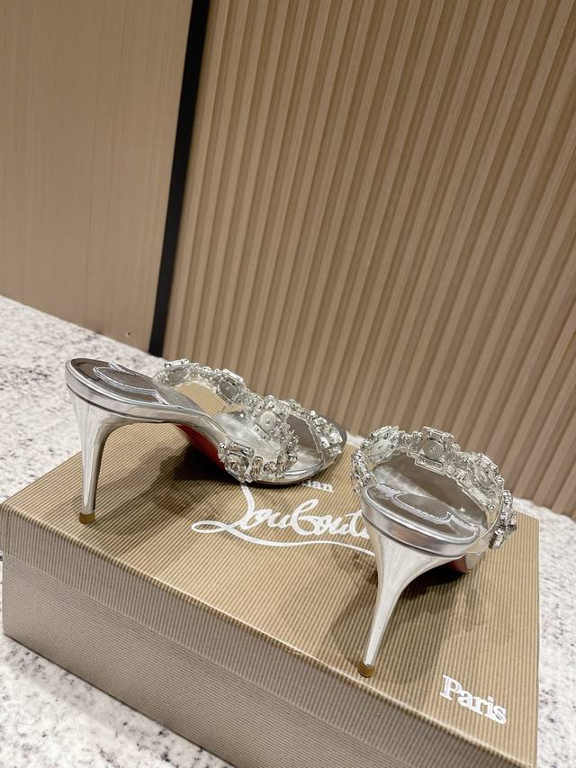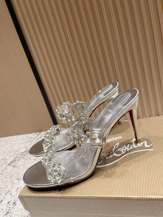 / 顶级版: Christian Louboutin 2025S原版做货重工Cljust Queen水晶高跟拖鞋 材质:进口Pvc+克里奥水钻 垫脚:粒面珠光羊皮里