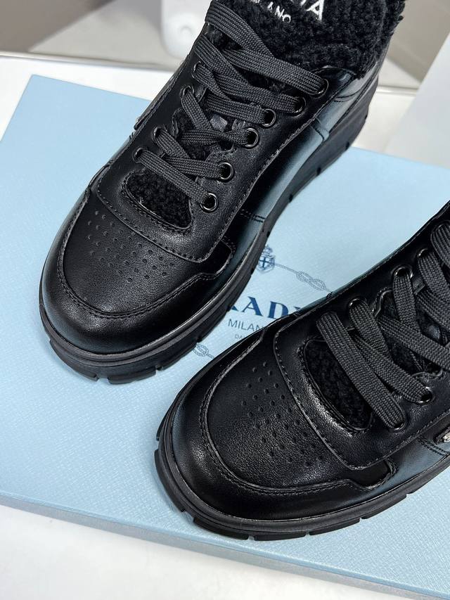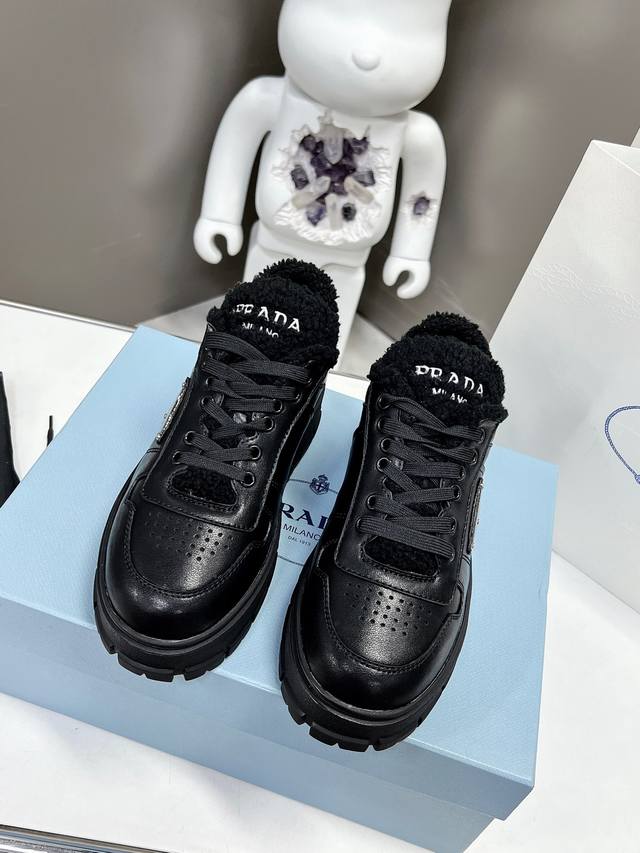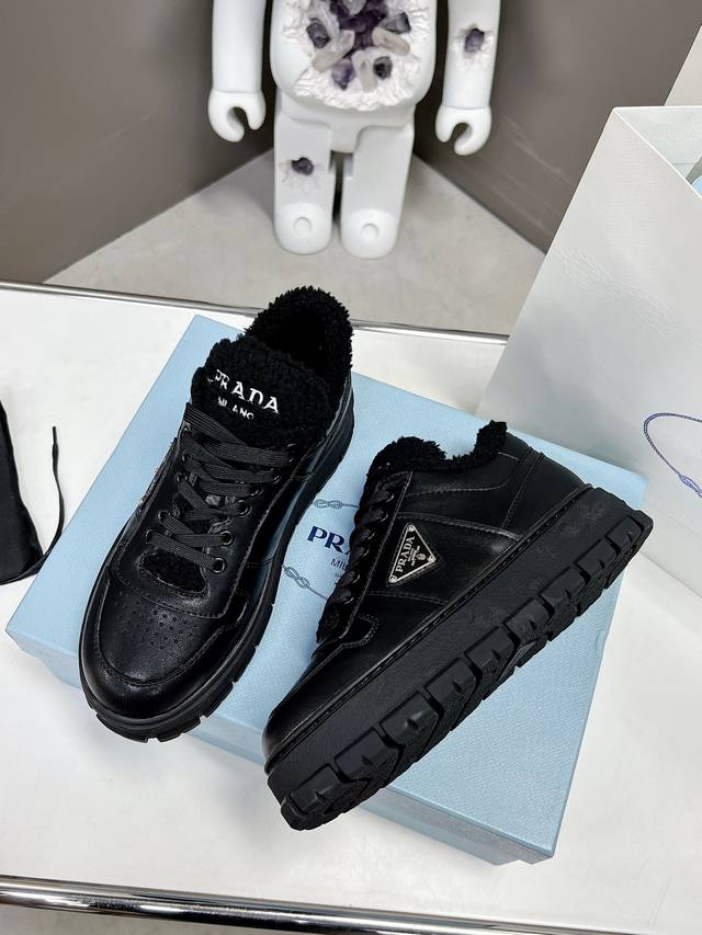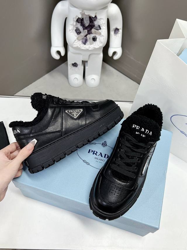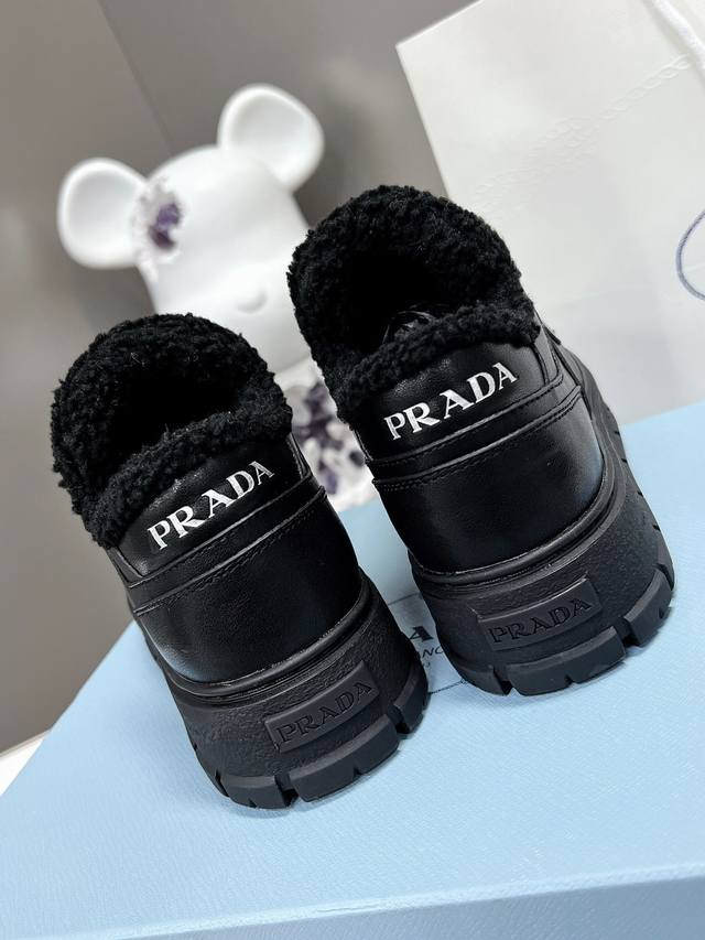 顶级版 Prada普拉达秋冬款 再次升级版!去年一发售一直畅销 今年升级版做工各方面都成熟漂亮! 原版1:1复制,标志性的三角标扣,Prada能在要重场合上得用了上,小清新风带点气贵的感觉,上脚非常完美,保暖的同时也不失美感!鞋头设计为方形半圆弧度更显得大方得体,包头毛半拖 包脚毛单鞋 脚感特别舒服,毛特别的柔软,鞋面 羊皮毛一体 ,羊毛垫脚,高级感满满!耐寒耐磨橡胶大底, 配搭原版的礼盒包装 码数:35-41 .41定做