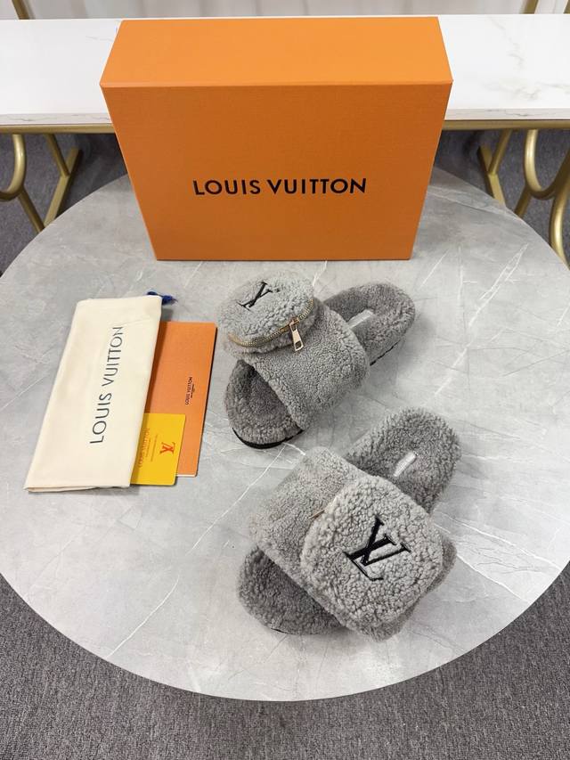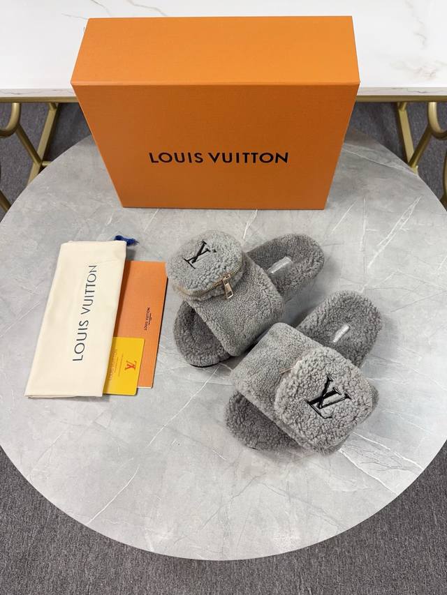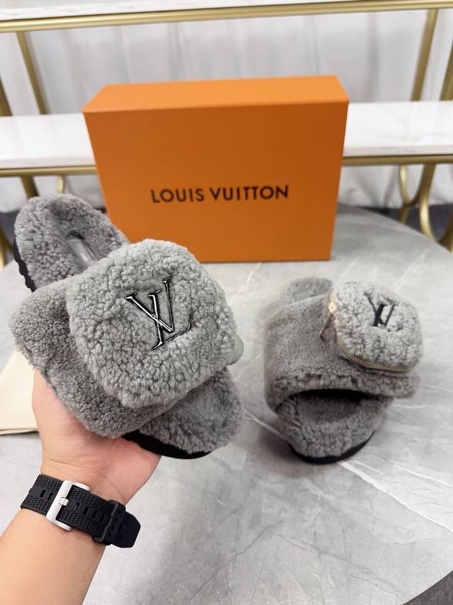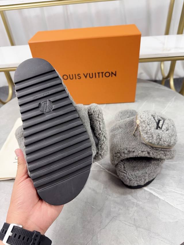 驴家Lv路易威登 爆款上市 Louis Vuitton 2025新款羊毛拖鞋细柔软羊毛 頂级品质纯皮毛一体直毛打造!超温暖的感觉,穿上仿佛踩在云朵上Lv经典老花装饰,精致高级!让这双毛拖身价陡增!鞋底是原版开模的Eva发泡防滑大底,非常好穿不打滑,而且鞋底有一定厚度,舒适度极佳! 鞋面:原版澳洲羊毛 内里:澳洲羊毛 垫脚:澳洲羊毛 大底:原版发泡底 底高:3.5Cm 包装:原版抽屉盒 码数:35-40 34 40 41定制不退换 颜色:官网同步色批: