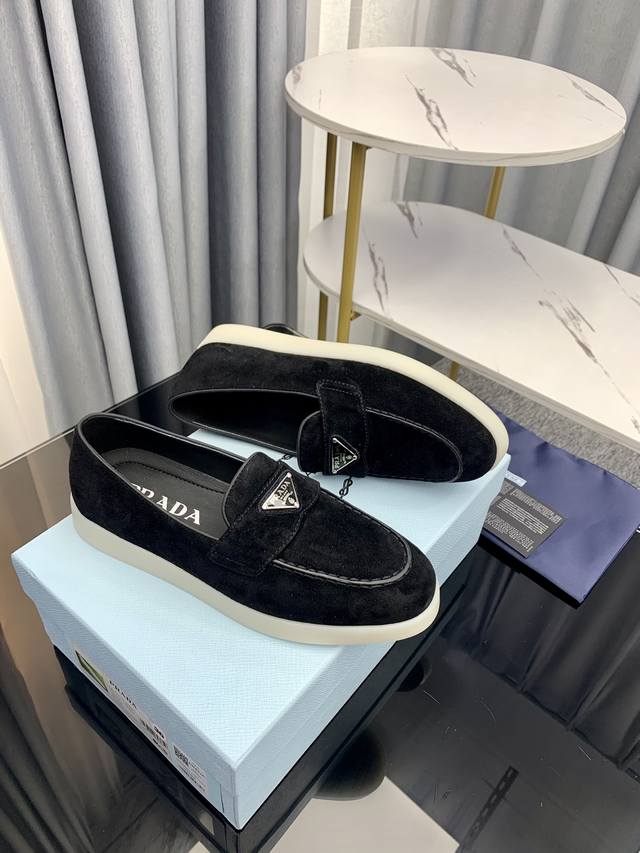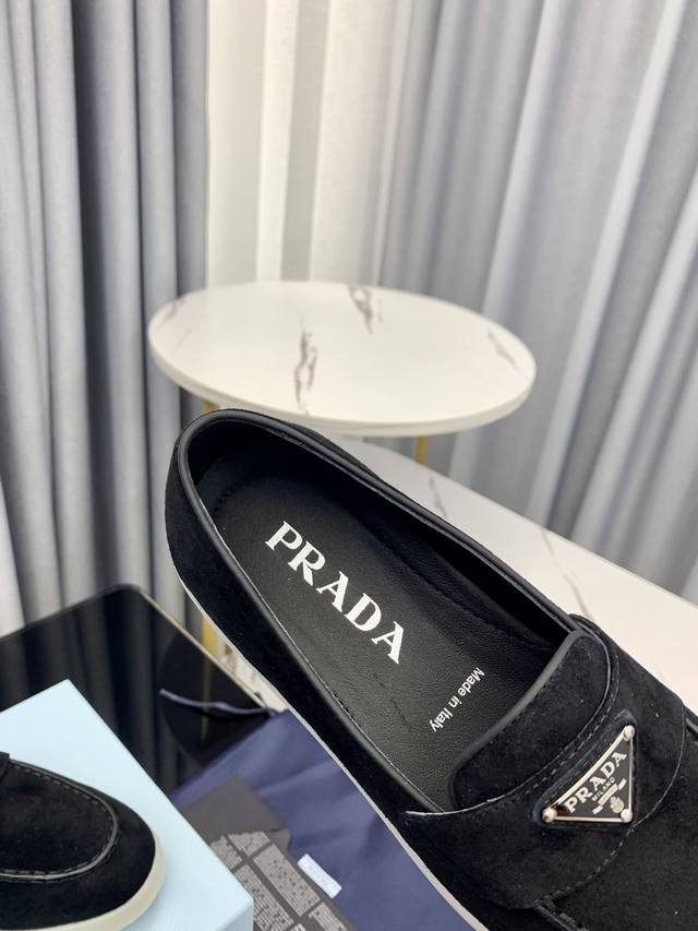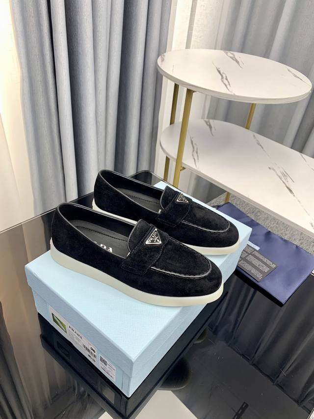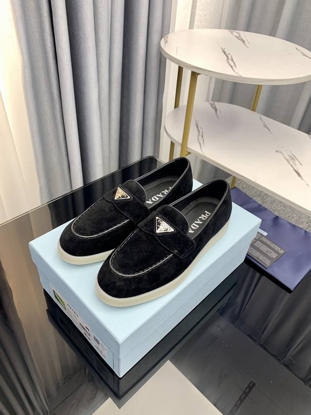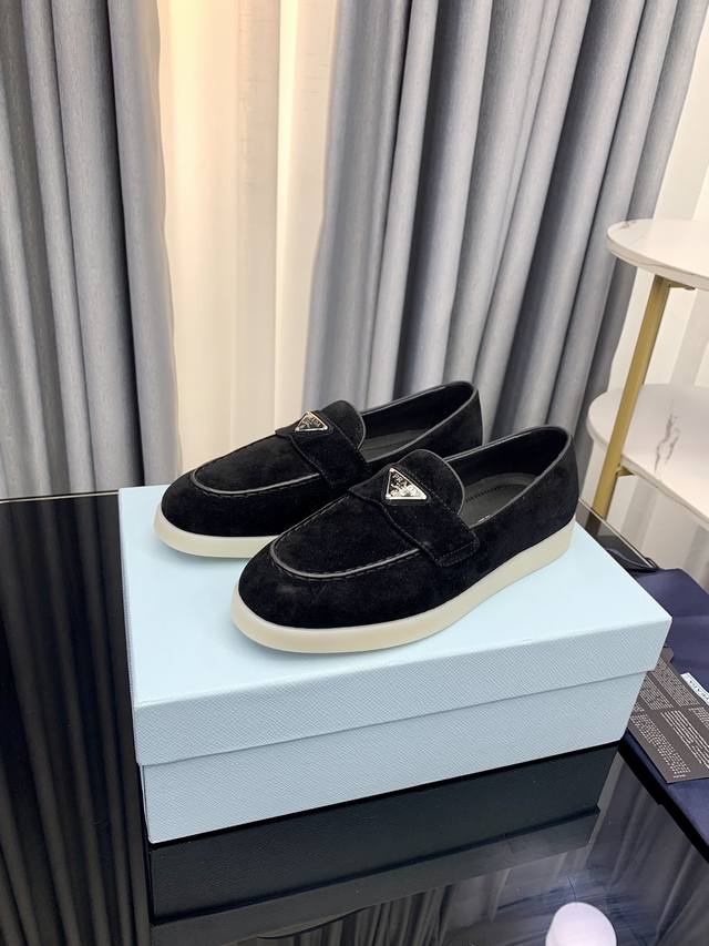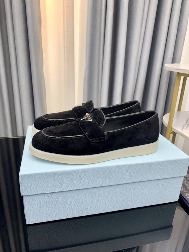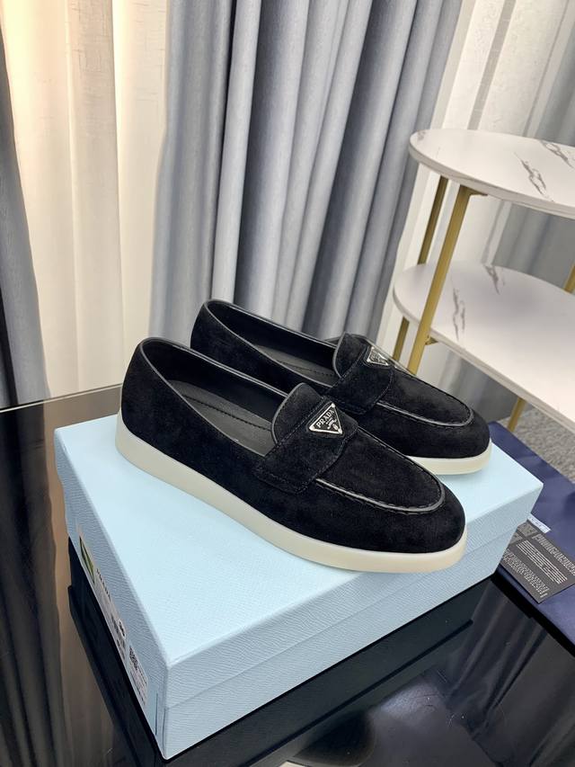 / 高品质出厂 !原版做货!顶级版本Prada 普拉达 Ss 夏季新款 Saint-Tropez 系列休闲鞋经典三角标中性乐福鞋新晋爆款~ 这款经典羊绒乐福鞋的鞋面