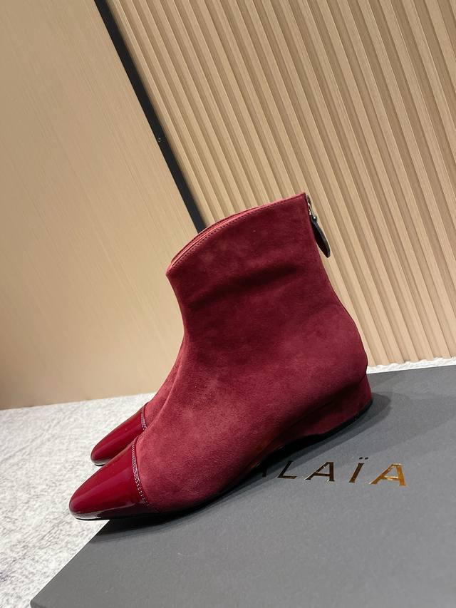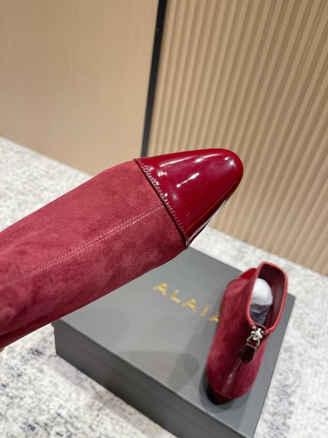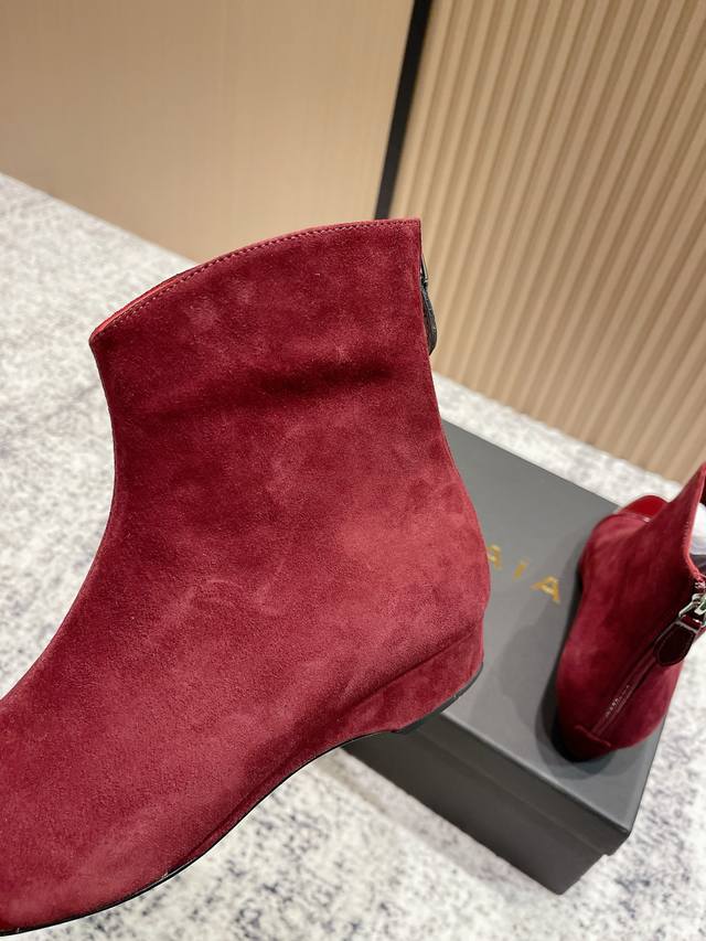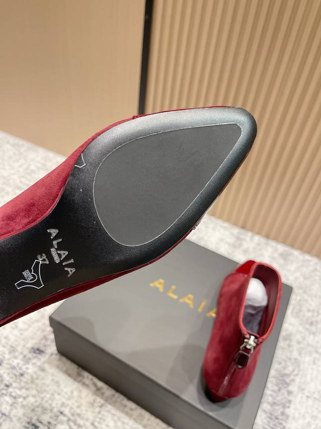 高品质出厂: 小众潮牌Alaia阿莱亚25秋冬新品麂皮后拉链坡跟尖头短靴踝靴! 该款尖头踝靴,拉长腿部线条比例; 羊反绒制成,轻松打造摩登型格。腿长作弊神器 心
